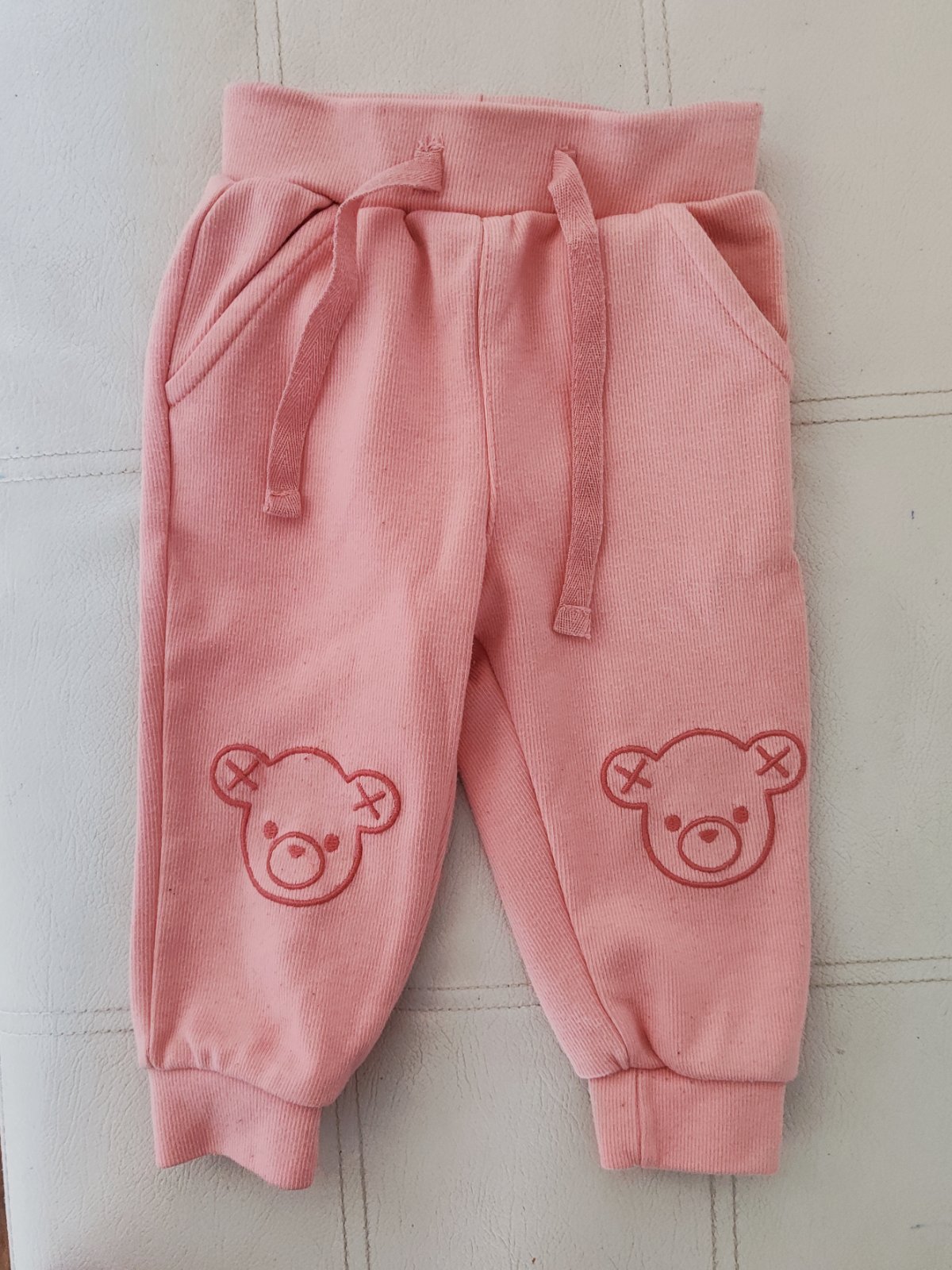 Pudlaciky Zara veľkosť 9-12 mes. , farba je niečo medzi lososovou a ružovou , dobrý nosený stav , nemajú fľaky ani poškodenia, trosku vidno pranie na farbe . Dĺžka cca 35 cm, pas 20,5 cm