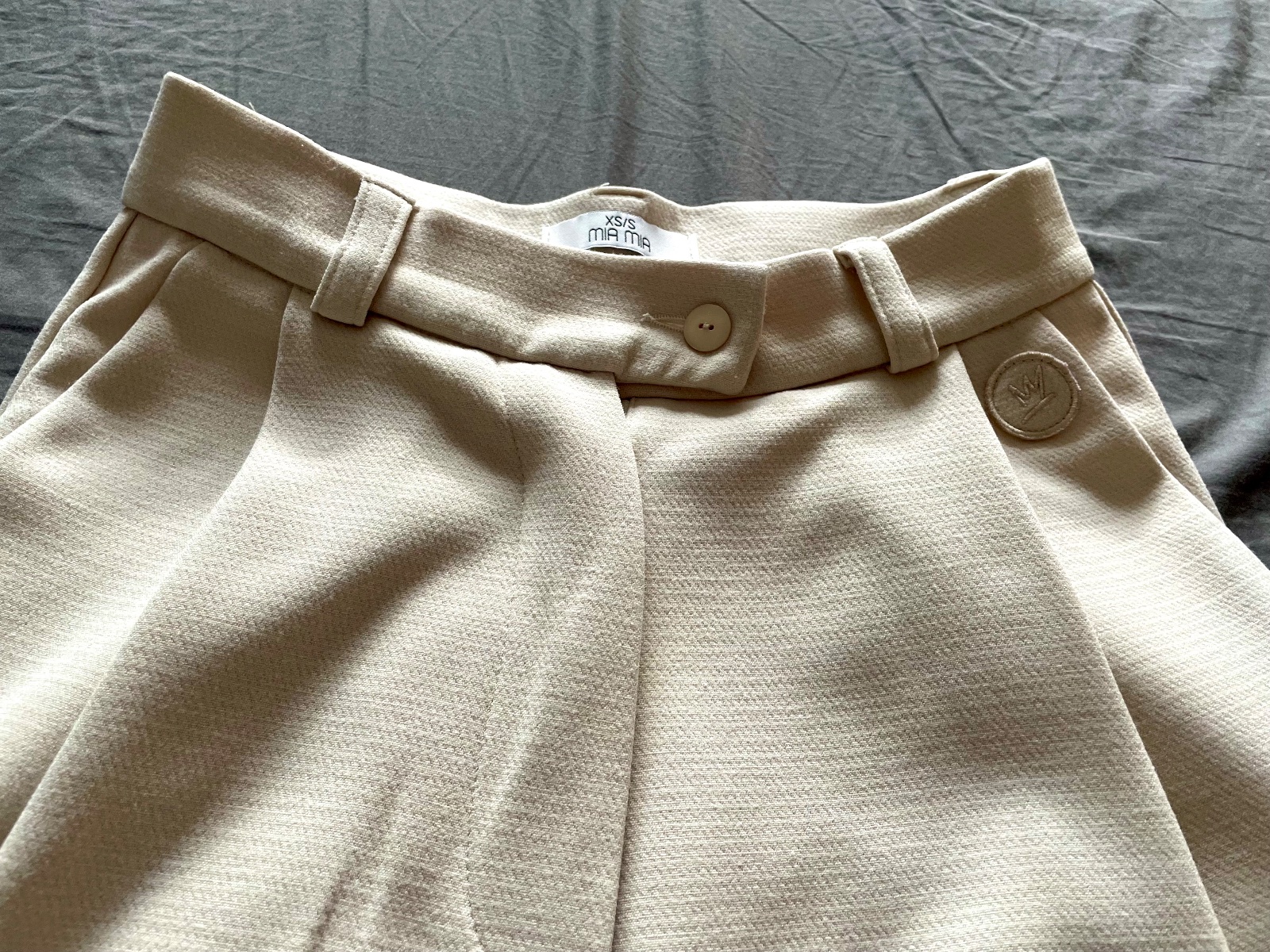 Elegantné, zaujímavo riešené nohavice kvalitného strihu slovenskej značky MIA MIA. Pás mi je po zapnutí gombíka dosť úzky, gombík by sa dal prešiť bez zmeny tvaru o cca 1-1,5cm a rozšíriť. V spodnej časti majú nohavice všitý gombík, ktorý ich umožňuje zúžiť a nosiť ako na foto. Veľkosť XS/S. Nepoškodené, jedenkrát vzaté (pre mňa úzky pás).