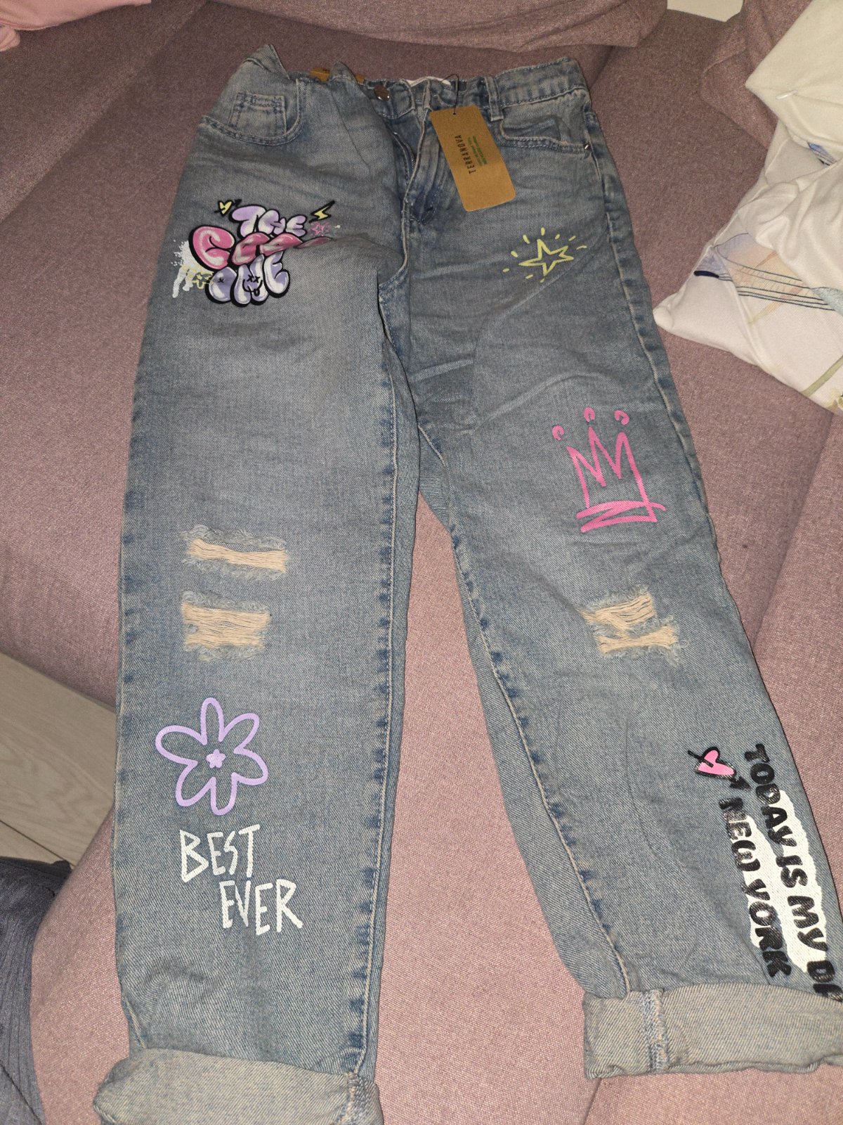 Mom fit džínsy s potlačou a roztrhaniami - Terranova https://share.google/AYc6U4lyB5TWxYsco