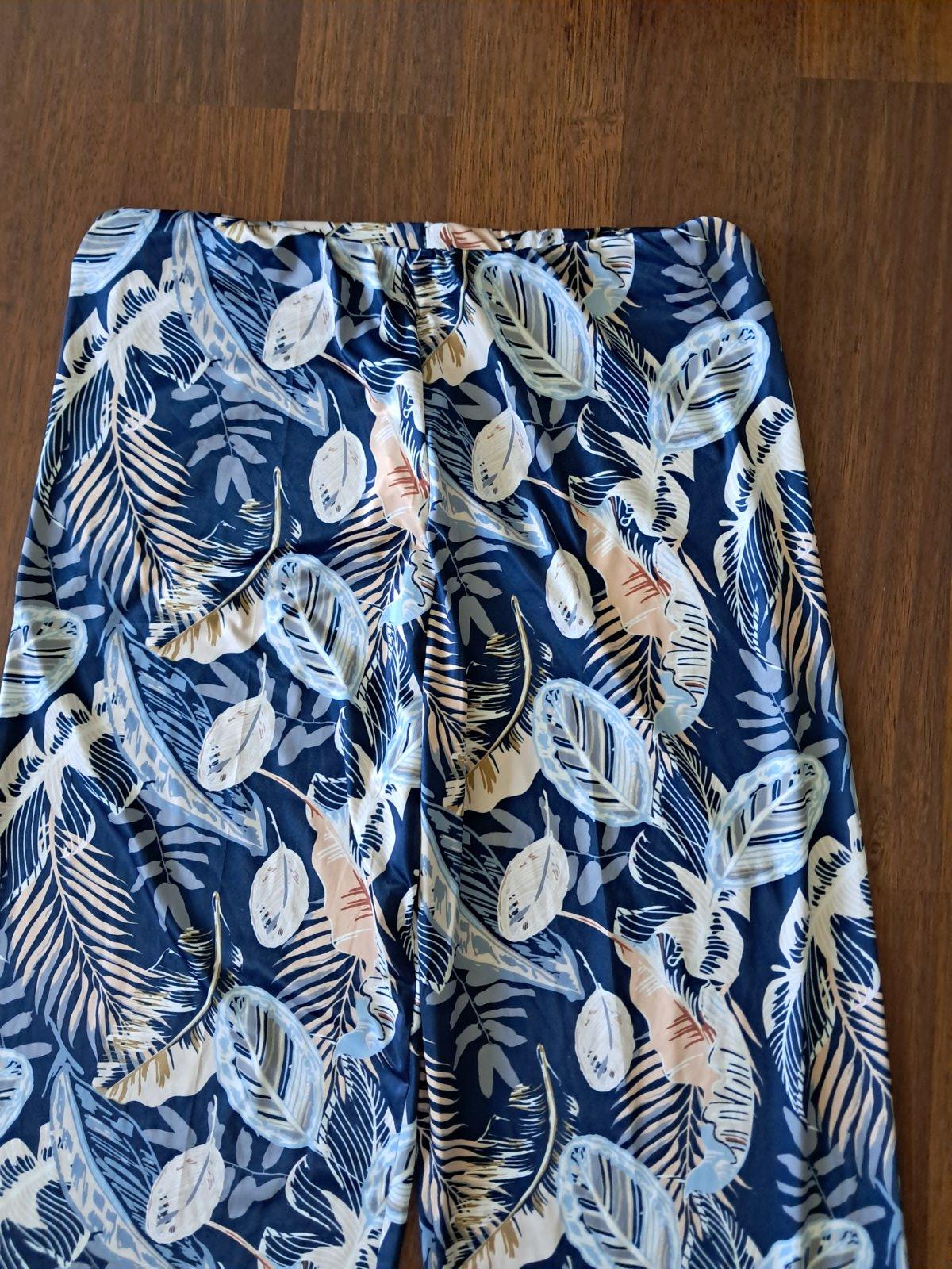 Made in Italy letne nohavice, velkost oznacena L cca 38, v pase na gumu, padavy material, skracovane, rozmery d. 98cm, s. 2x 35 cm v klude