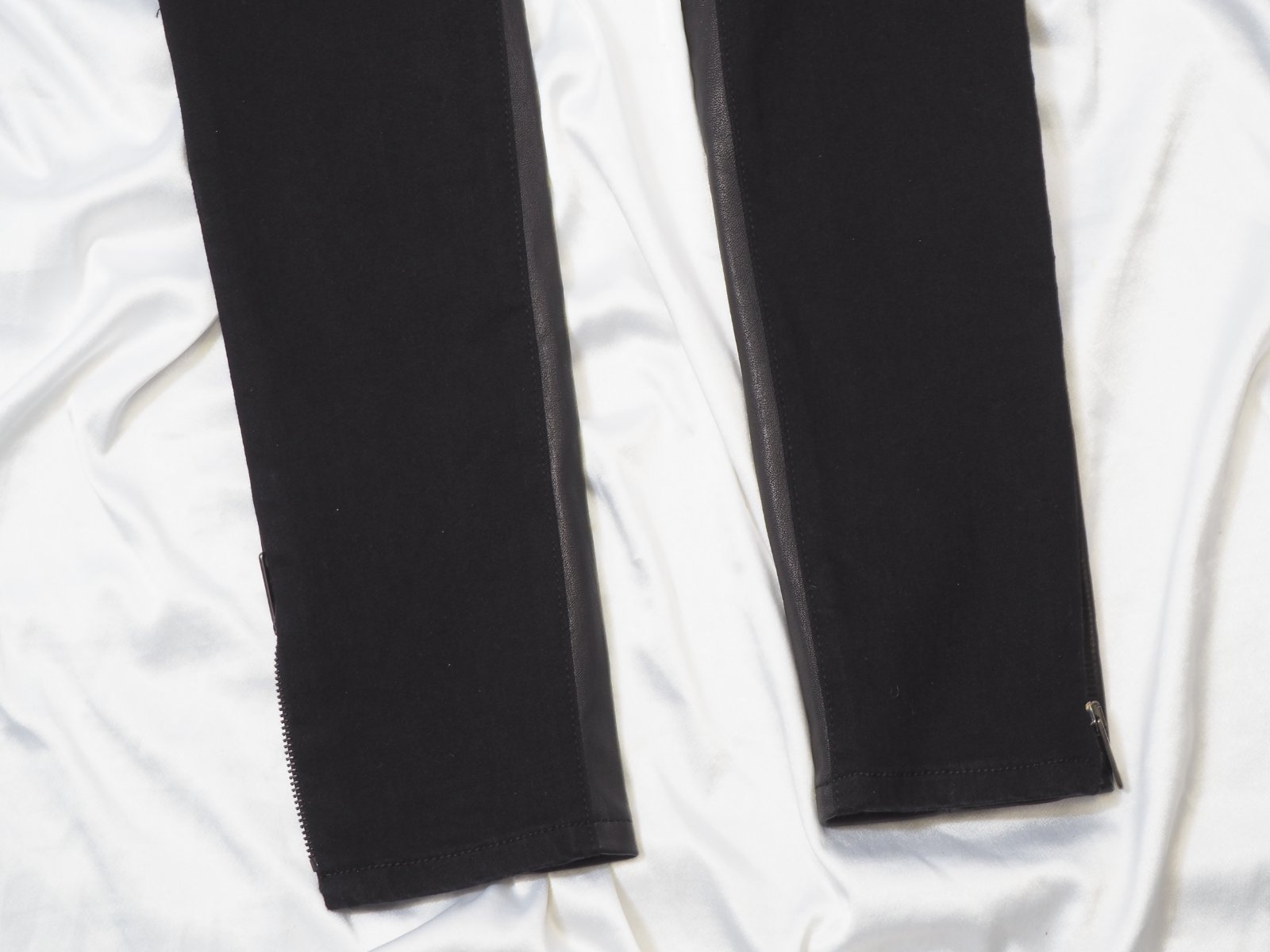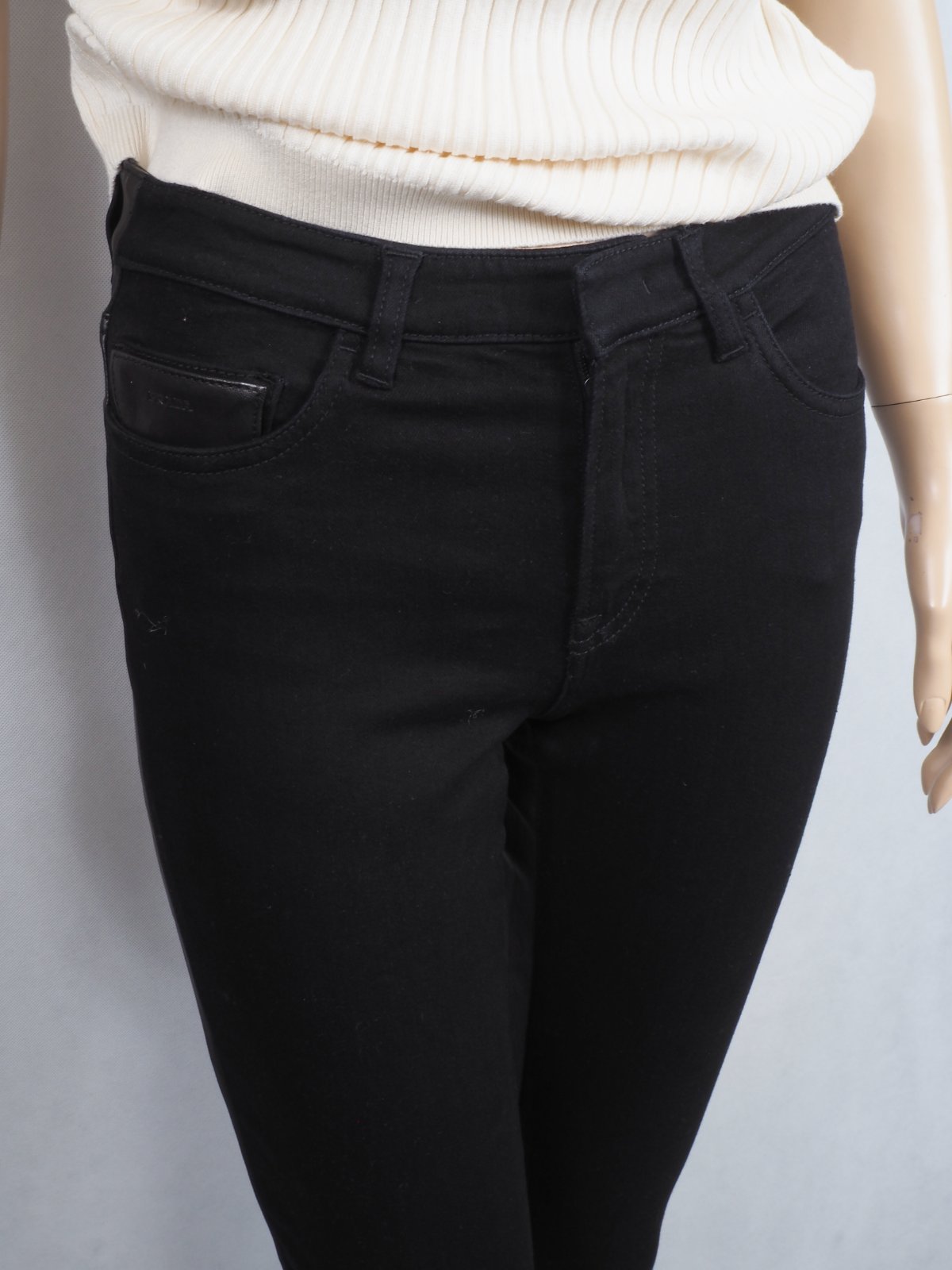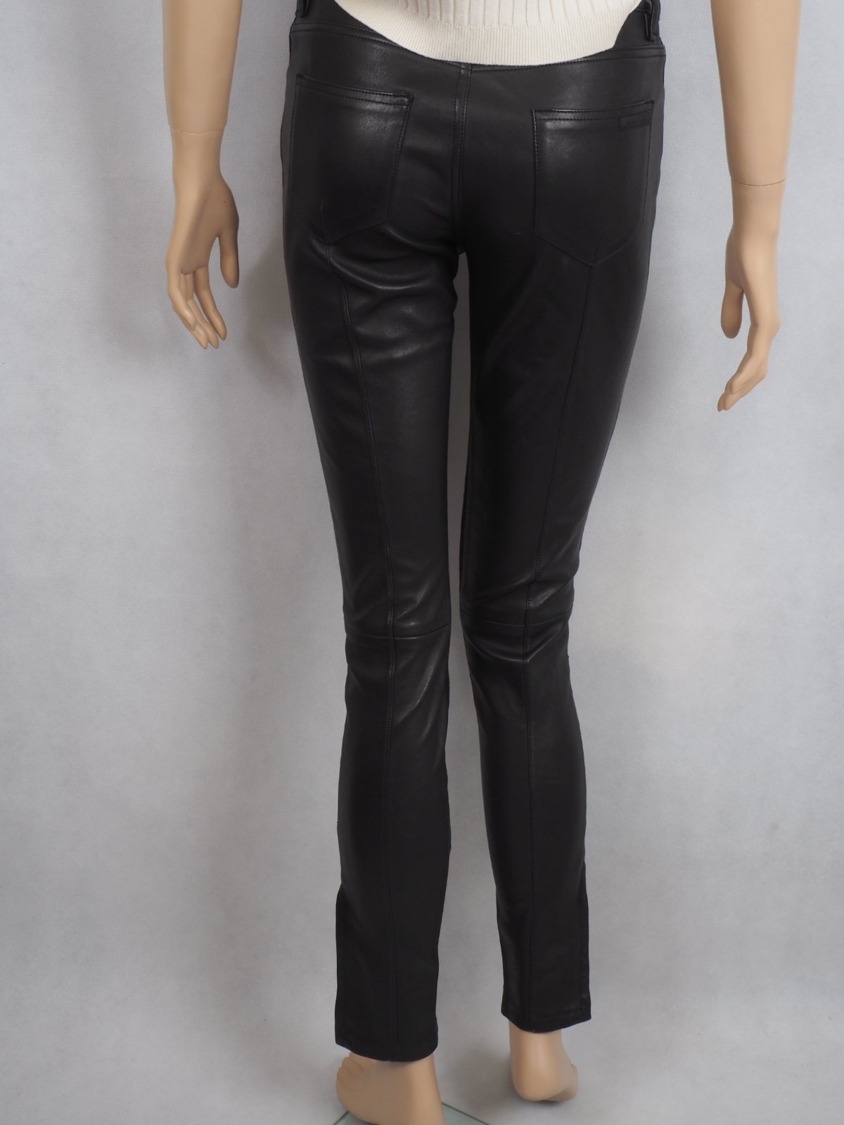 Luxusné čierne strečové rifle s koženým zadným dielom, na nohách zipsy po bokoch, materiál 98% bavlna, 2% polyuretán, zadný diel pravá jahňacia koža, nové bez visačky....pc 799 €
