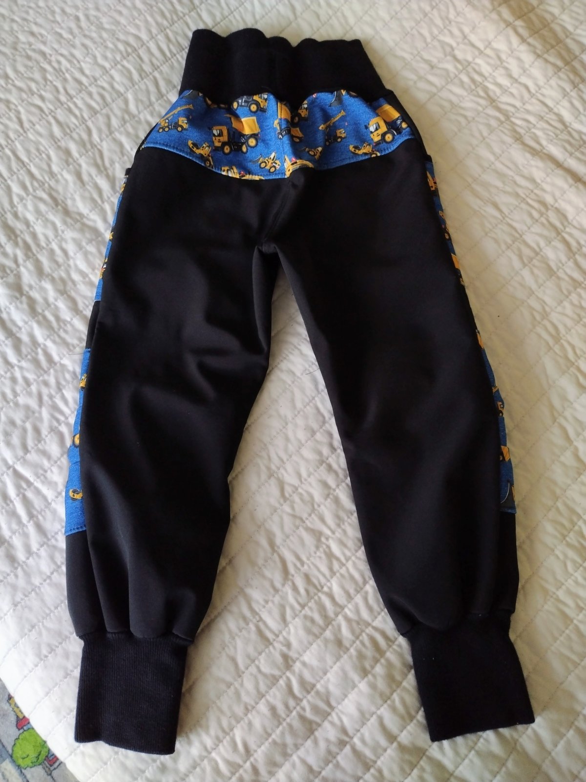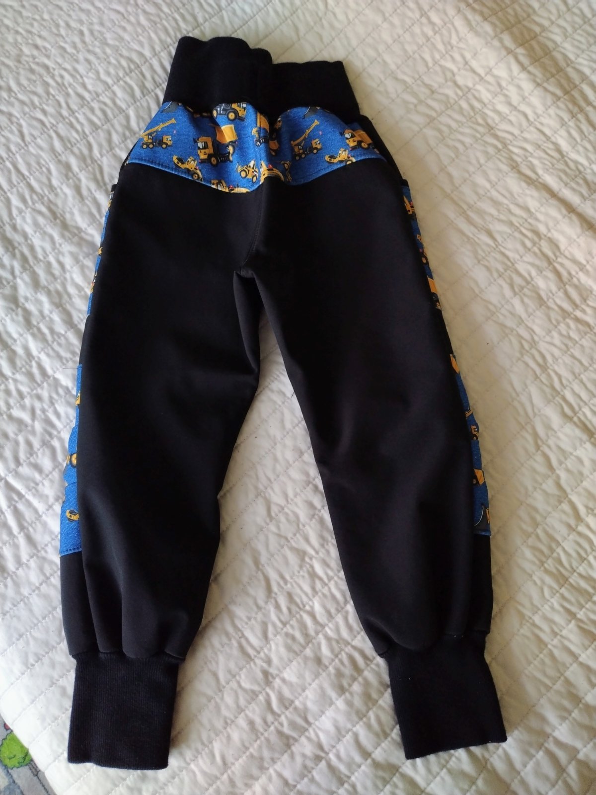 Kvalitné softshellové nohavice, veľkosť 116, v páse na gumičku, aj naspodu sú gumičky, kvalitný hrubý softshel, handmade výrobok.