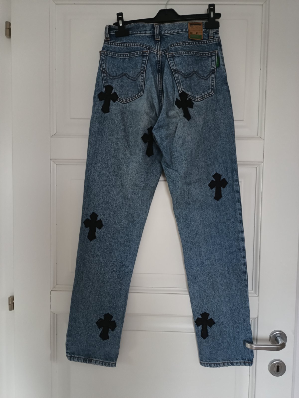 Predám rifle so zaujímavými nášivkami. Veľkosť 28/32. Sedia na Sko.