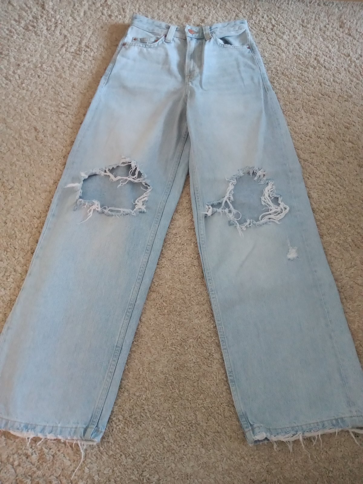 Bez vad, sedia aj ma velkost 36.Sirka pas 34cm, dlzka 106cm od pasu, dlzka od klinu 78cm.