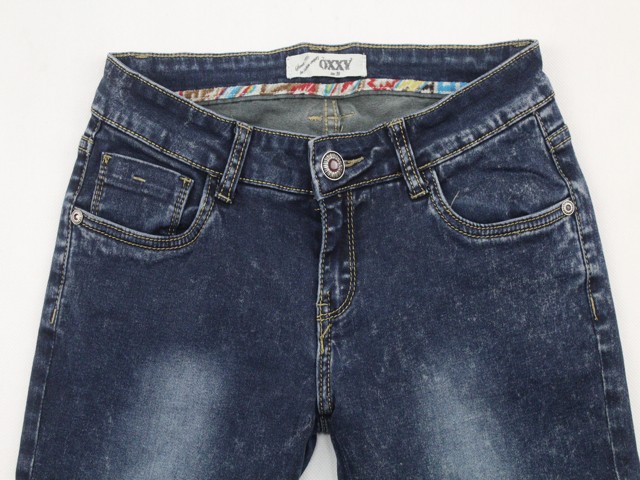 Dámske pružné modré rifle OXXY so zipsami naspodu