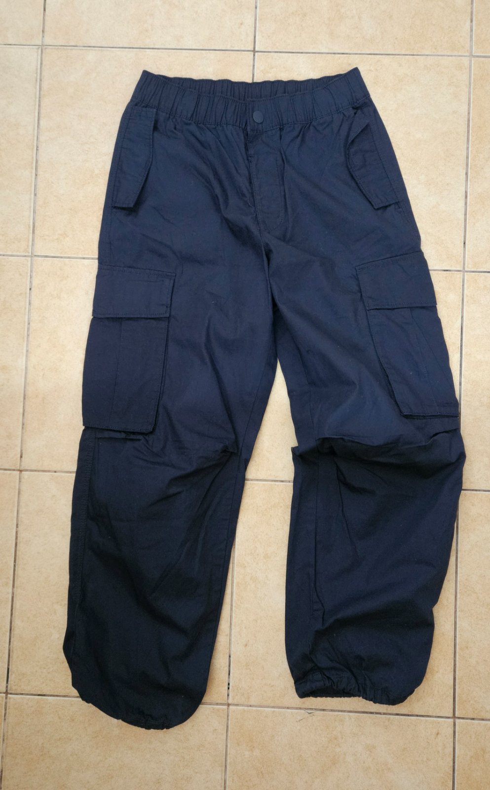 Nohavice nikdy nenosené, len odstrihnuta visačka. Pás na cvok, dole možnosť utiahnuť. Pás 32 cm, dĺžka 90 cm.