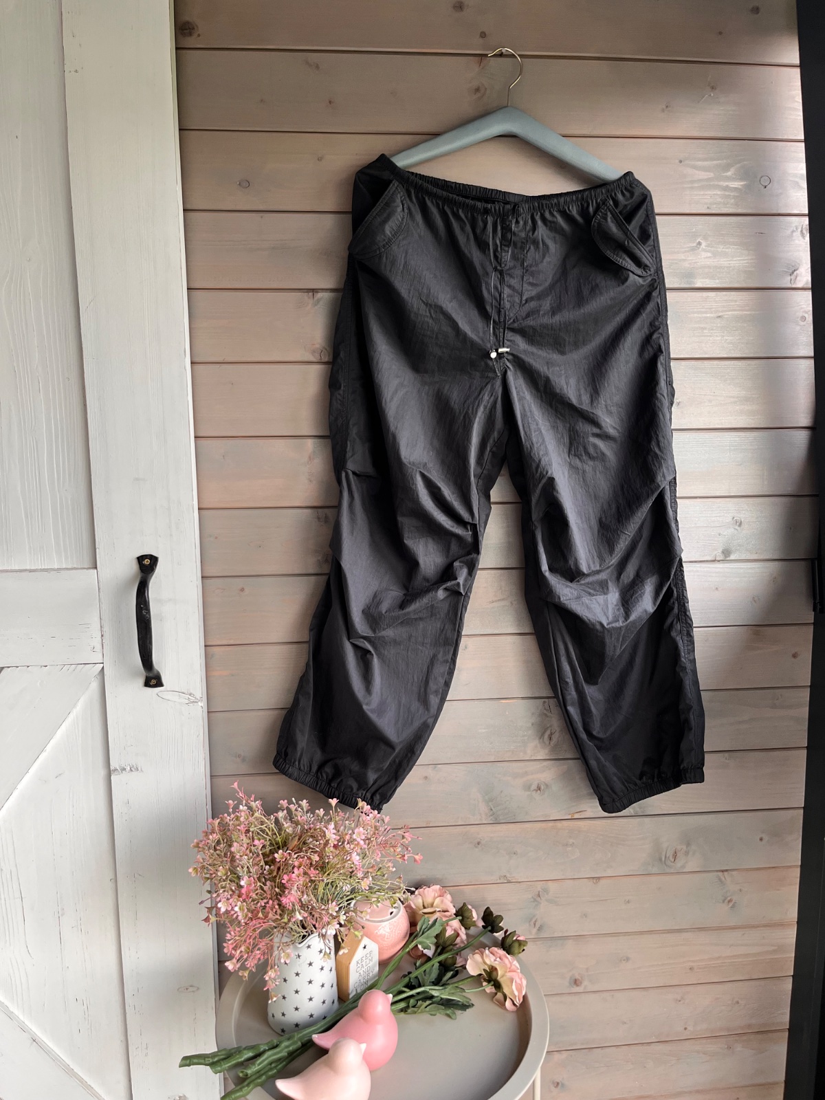 Nosené nohavice v páse gumička, vrecká. Známky nosenia.
