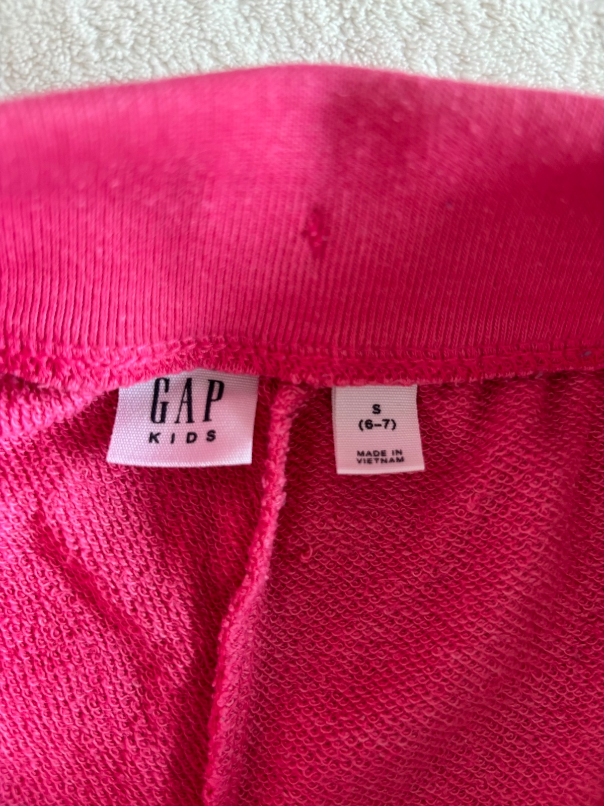 Ponúkam tepláky GAP štandardný strih vo farbe ružová. Bez flakov a poškodení, mierne žmolky v dôsledku nosenia a prania. Sú tenké, vhodné na jar/leto.