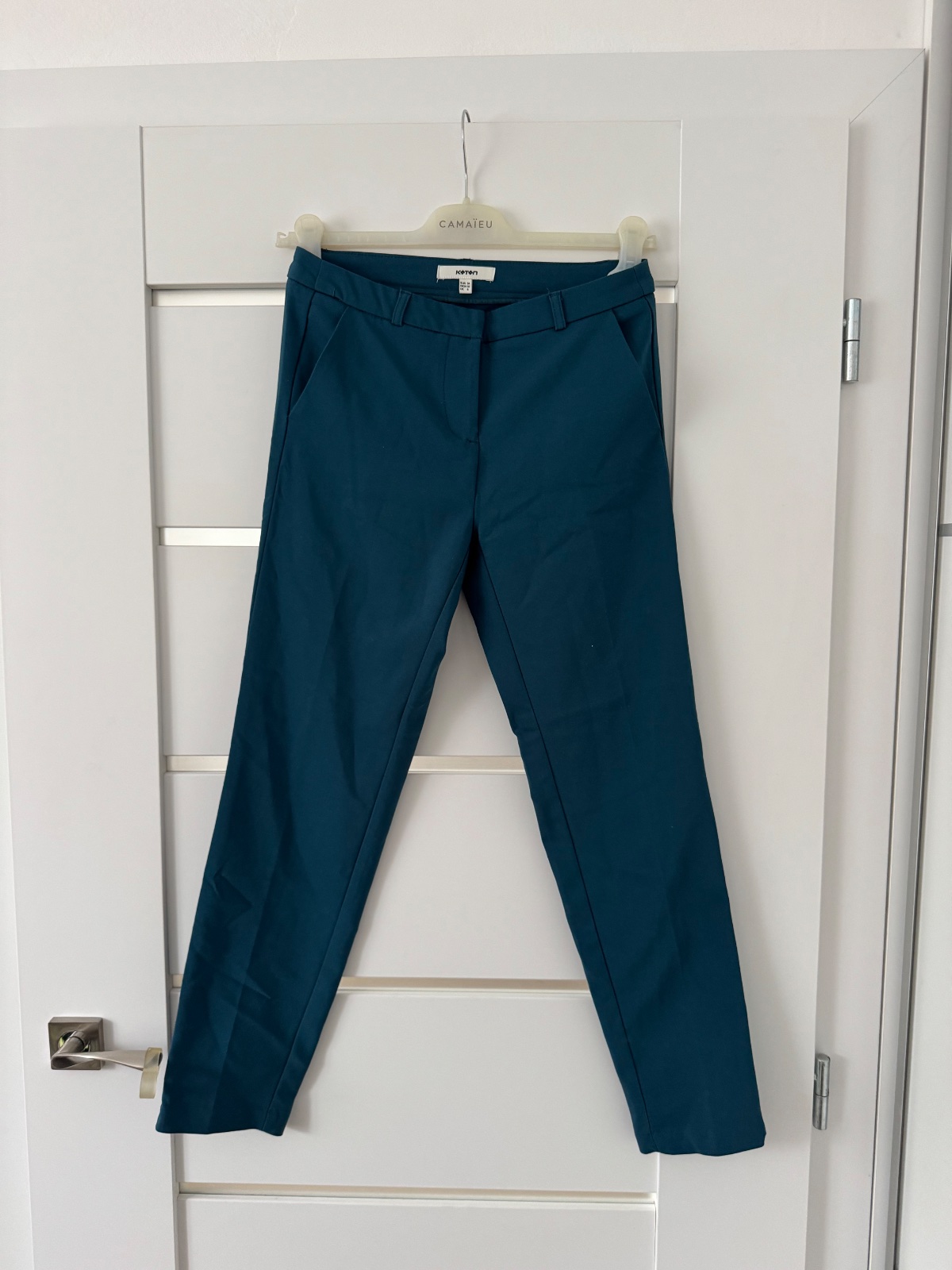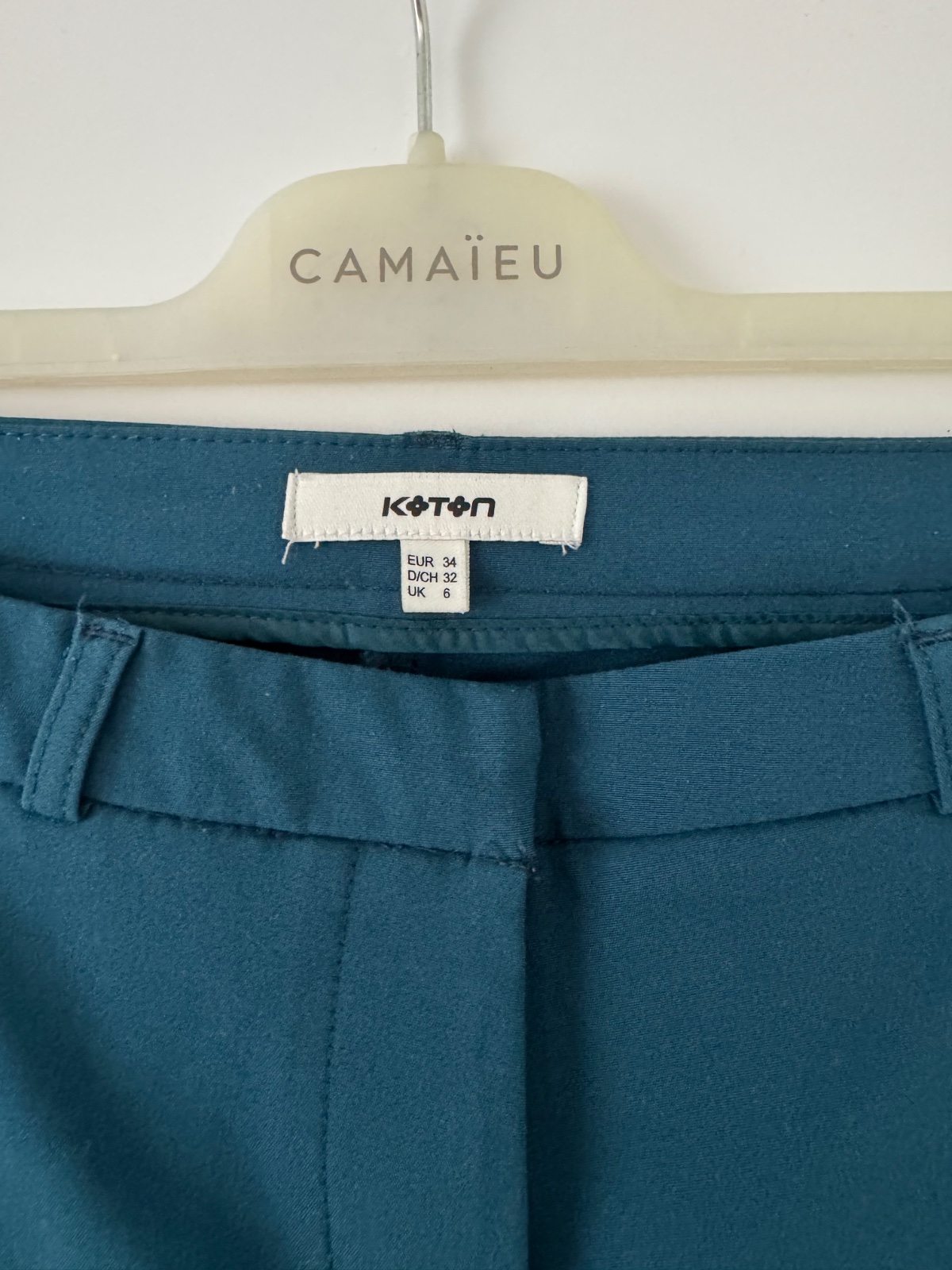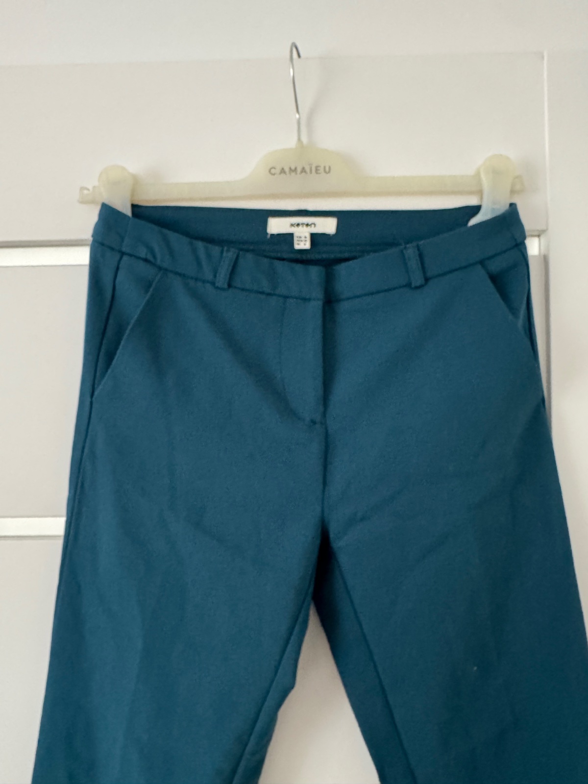 Predám nohavice Tyrkysovej farby, veľkosť 34, rozmery: pás 34 cm, dľžka 96 cm, cena 15€ + poštovné, je možný aj osobný odber v Ba