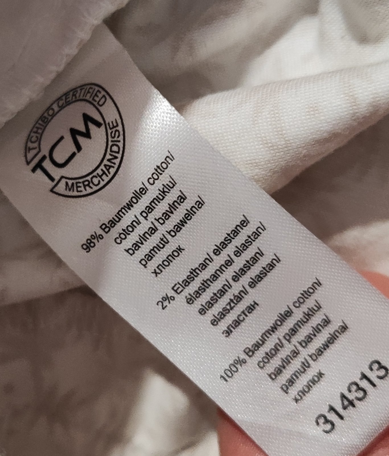 Farba medzi bielou a krémovou. Nosené minimálne bez poškodení. 97% bavlna 5 % elastan