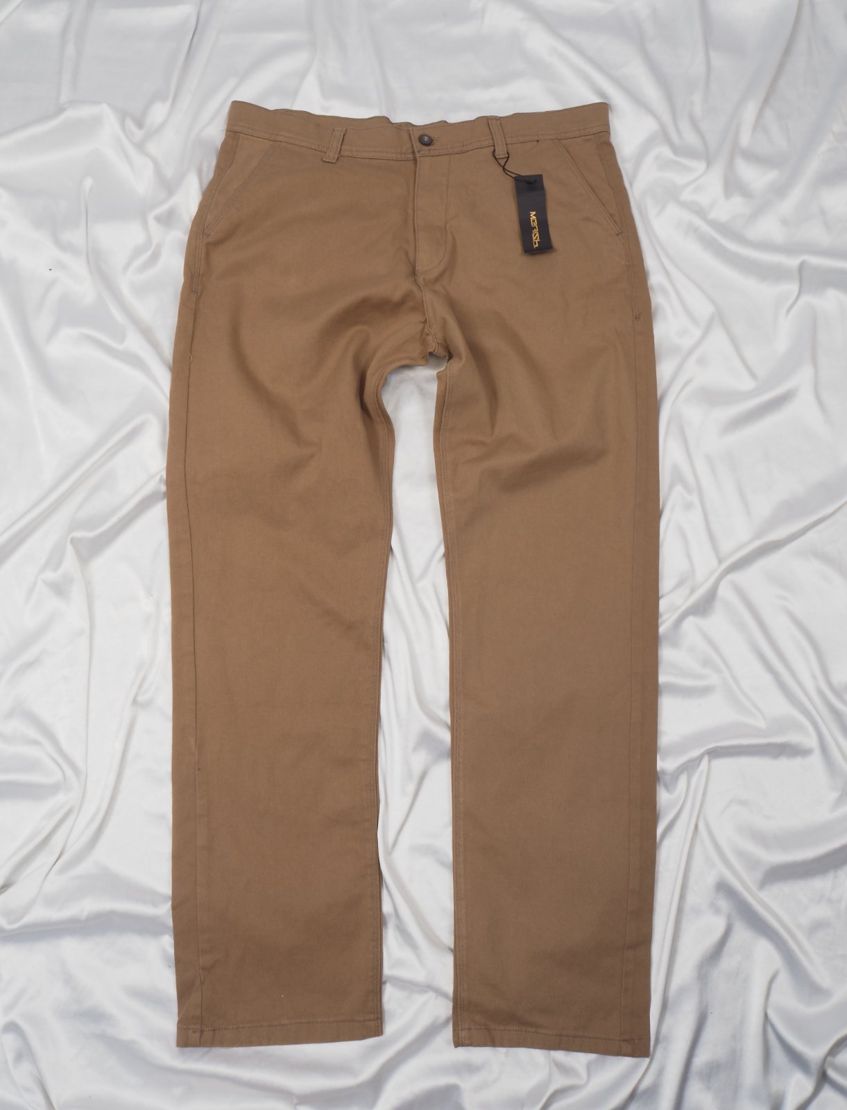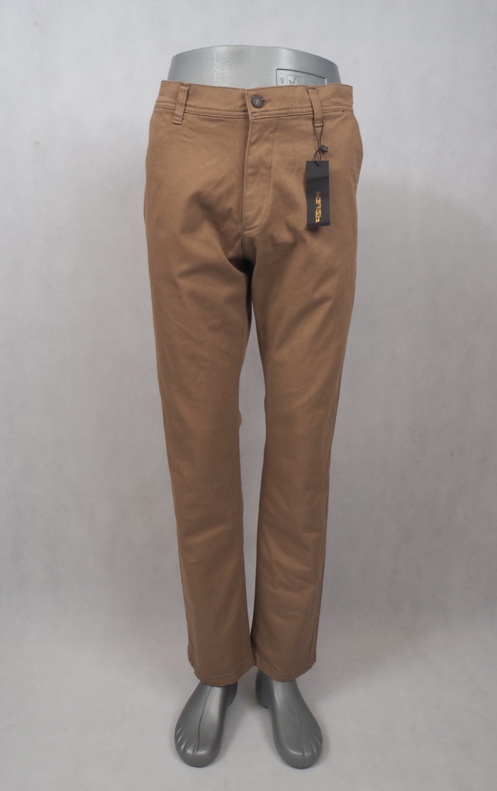 Kvalitné pánske nohavice, hnedej farby, zapínanie na zips a gombík, materiál 97% bavlna, 3% elastan, nové s visačkou.