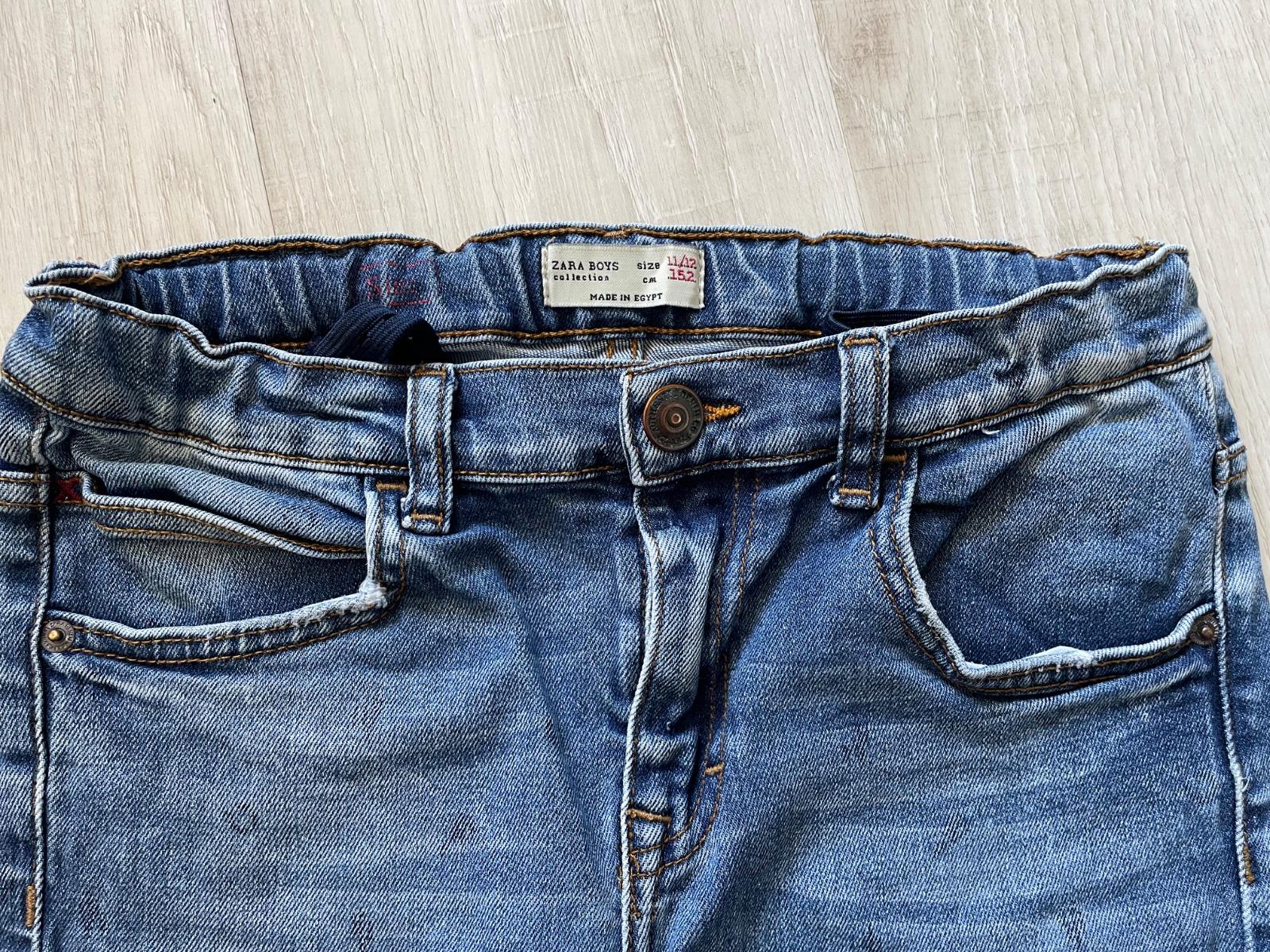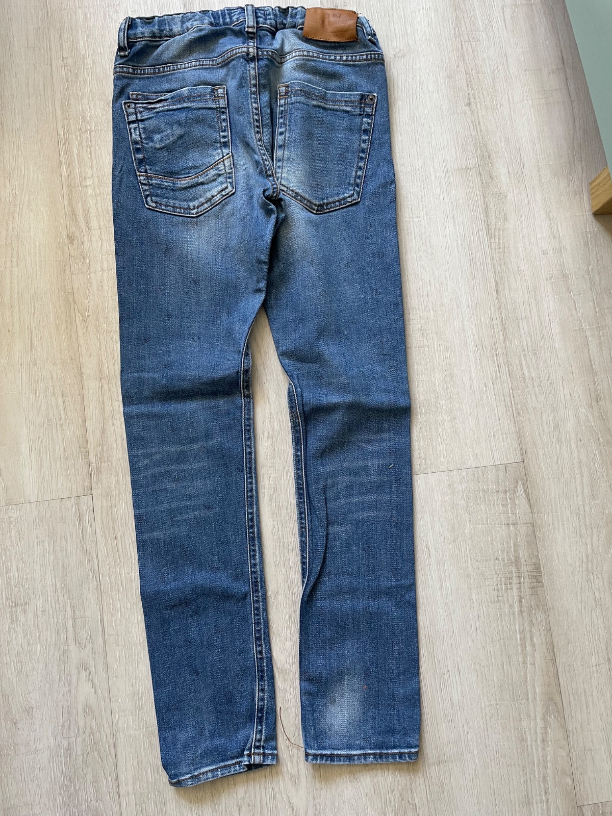 nosene ,na jednom kolene dierka .Celkova dĺžka 94cm,pas 2x32 v pase regulovateľná gumicka