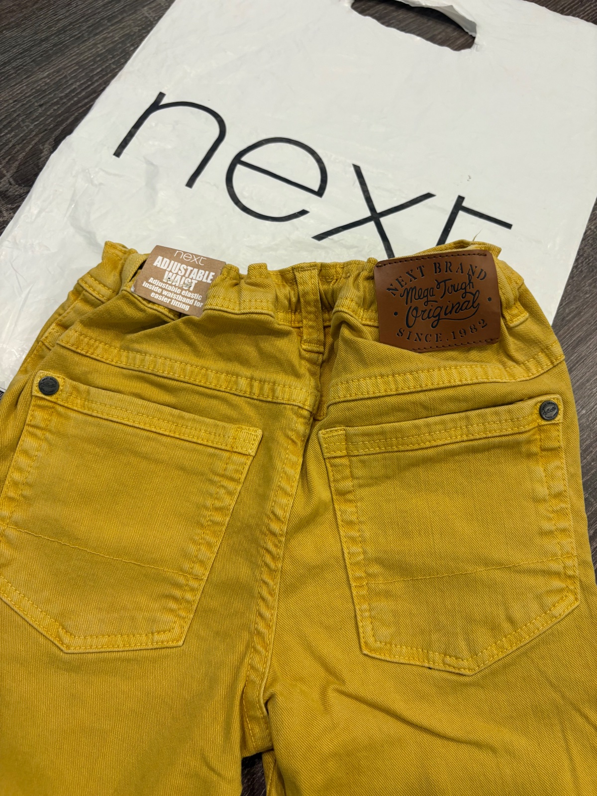 04.Next nove chlapcenske elasticke horcicove rifle,velkost 4-5 rokov, č.110,v pase je stahovacia gumka.Dlzka je 64cm,sirka v pase je od 25x2cm do 30x2cm
