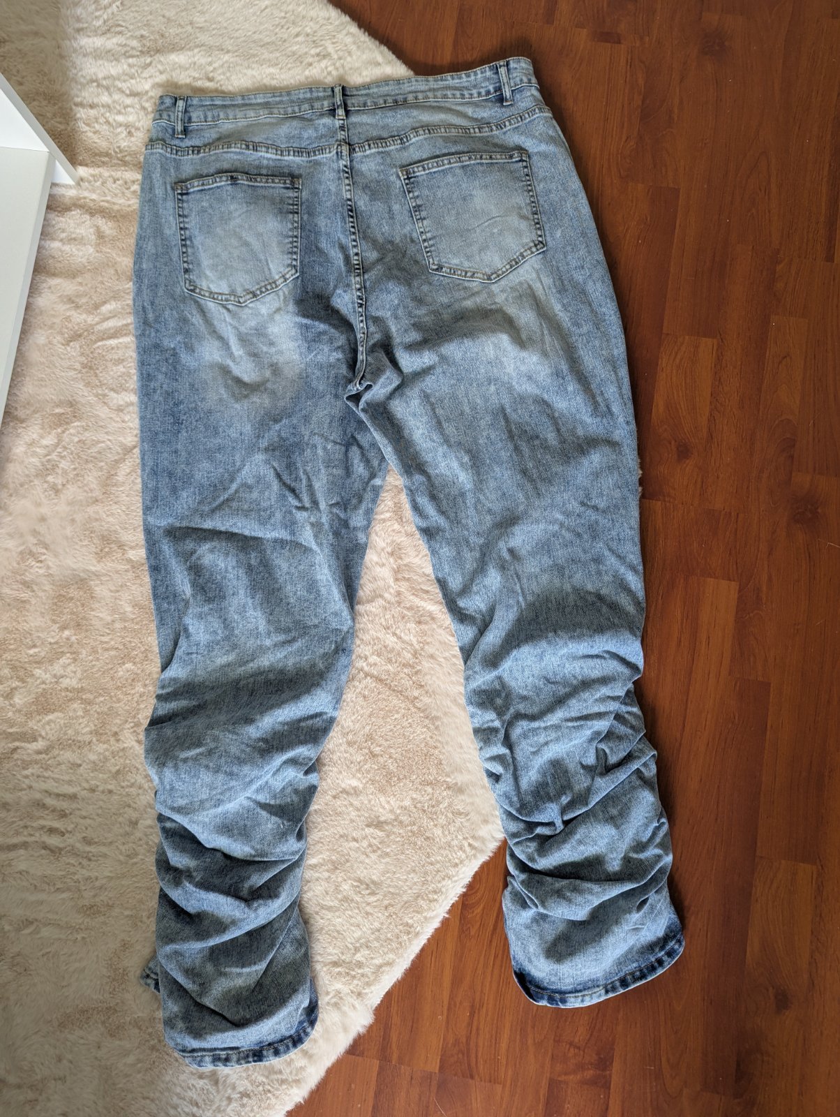 Dámske rifle (boli len odskúšané),ktoré sedia na veľkosť 48/50, no každopádne sa treba riadiť rozmermi. Rifle sú z podajnej rifloviny. Dole sú širšie (zvonové), viď foto.