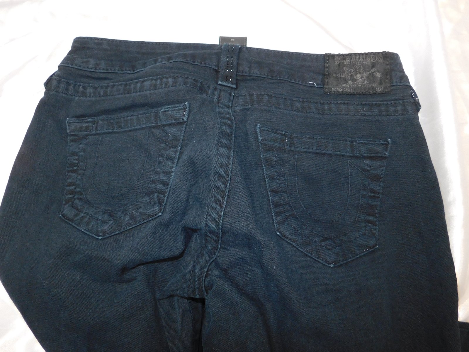 TRUE RELIGION Luxusne damske rifle,tmavomodrej farby,prisposobive,po bokoch zdobene kamienkami.super stav. PC 340€. se35
