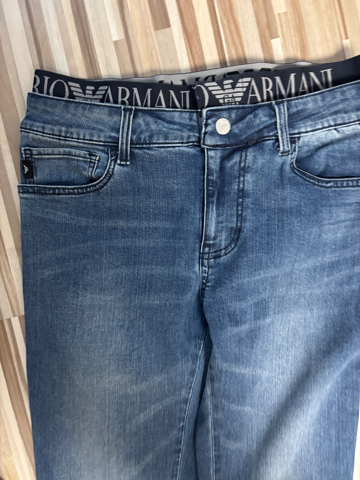 Rifle Emporio Armani s nápismi na páse