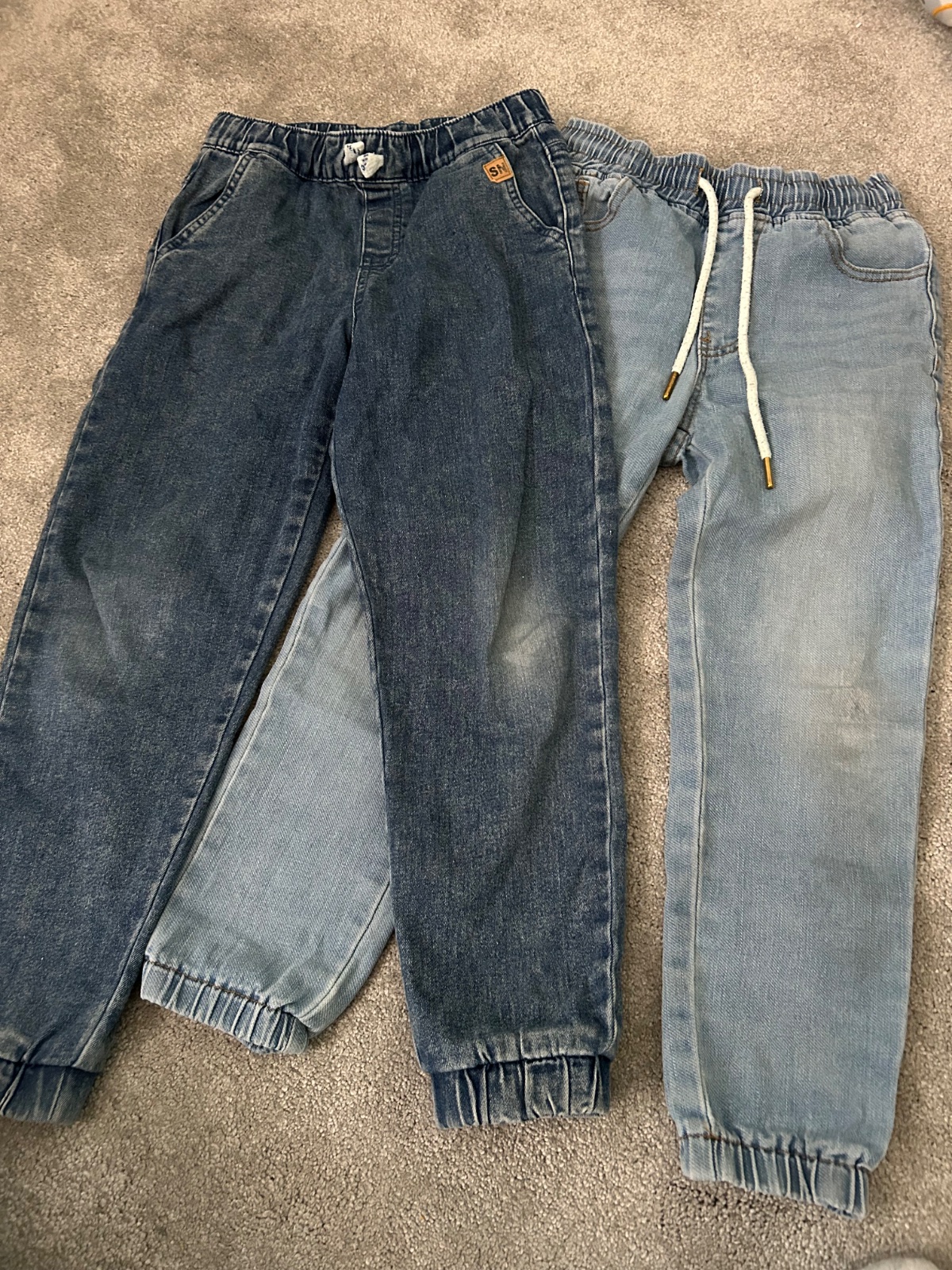 Velkostne sedia. Bez poskodeni. Cena spolu. Plus darujem k nim 2 ks rifli. Maju trosku odrate koleno ale este znositelne.