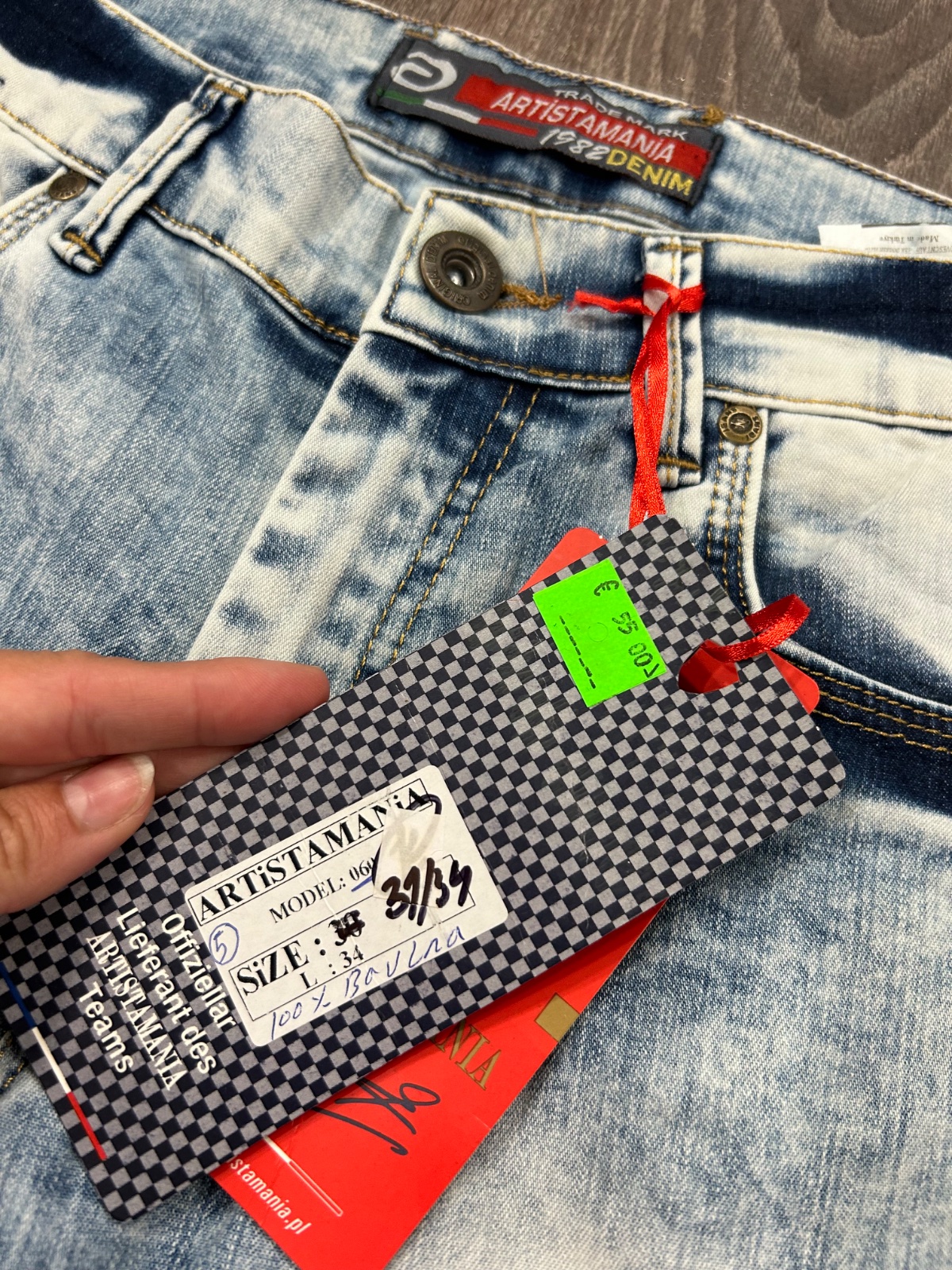 Artistamania nove panske rifle vo velkosti 31/34,PC 55 eur.Dlzka je 107cm,sirka v pase je 41x2cm,predny sed je 25cm a zadny je 33cm.Sirka cez stehno pod rozkrokom je od 28,5cm do 29x2cm