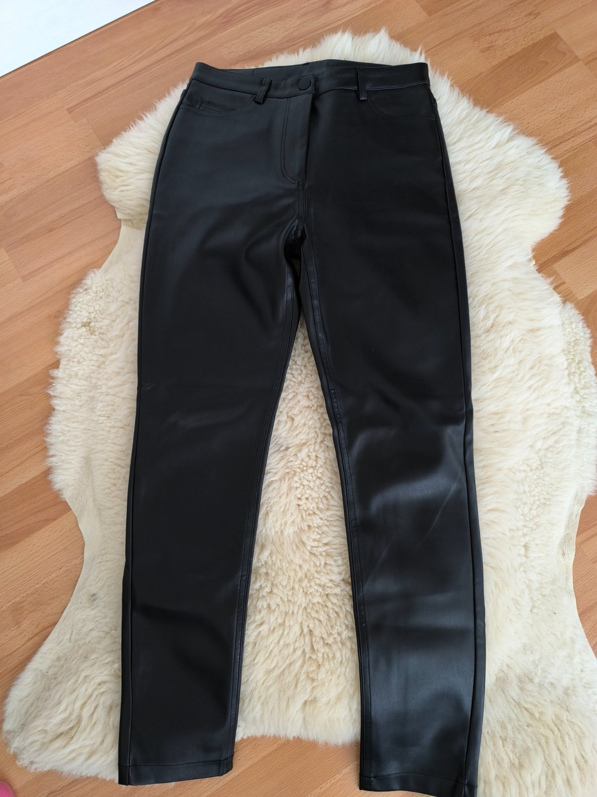 Koženkové nohavice,vyteplené.pás 36, vonkajšia dĺžka 97, vnútorná dĺžka 70