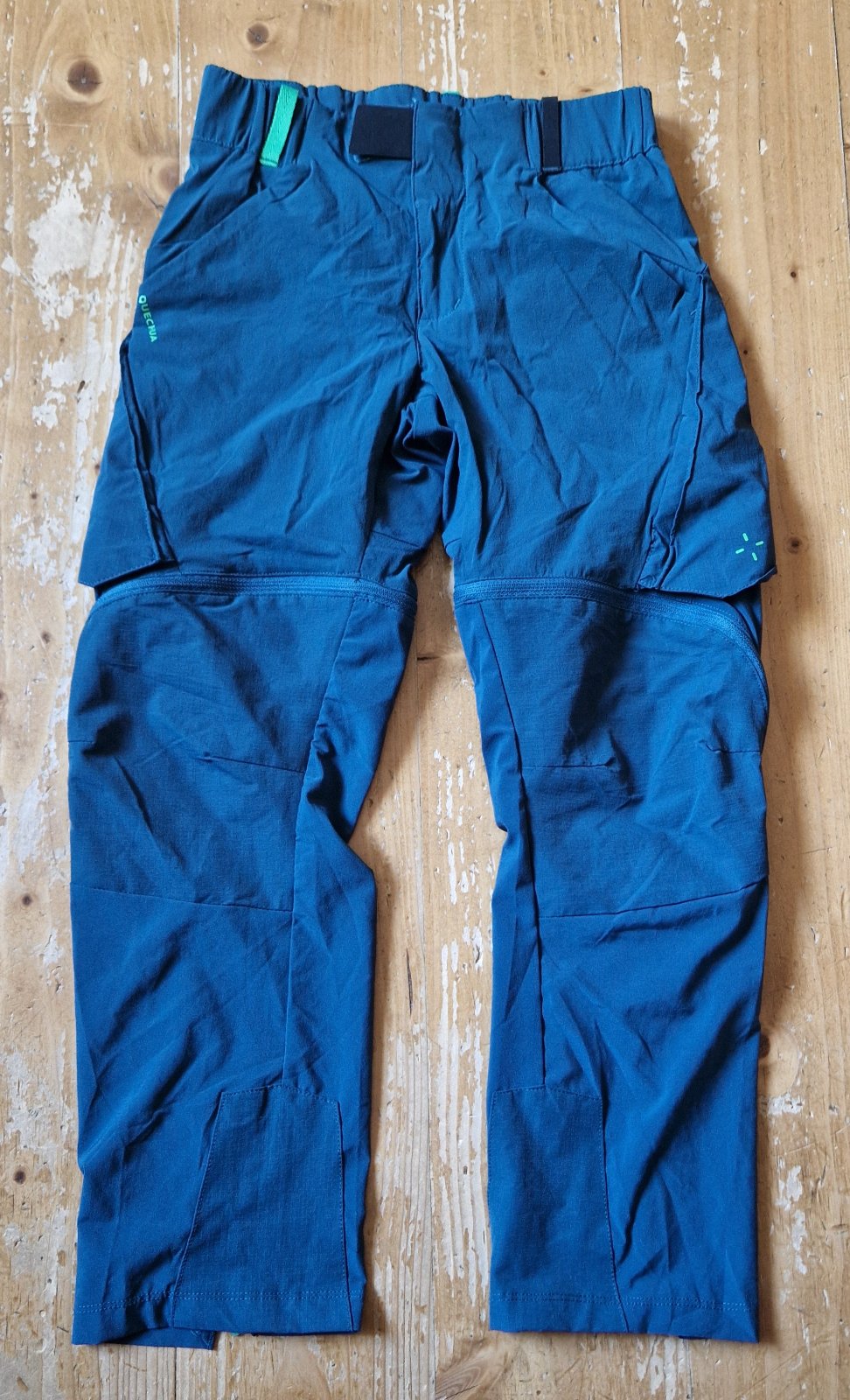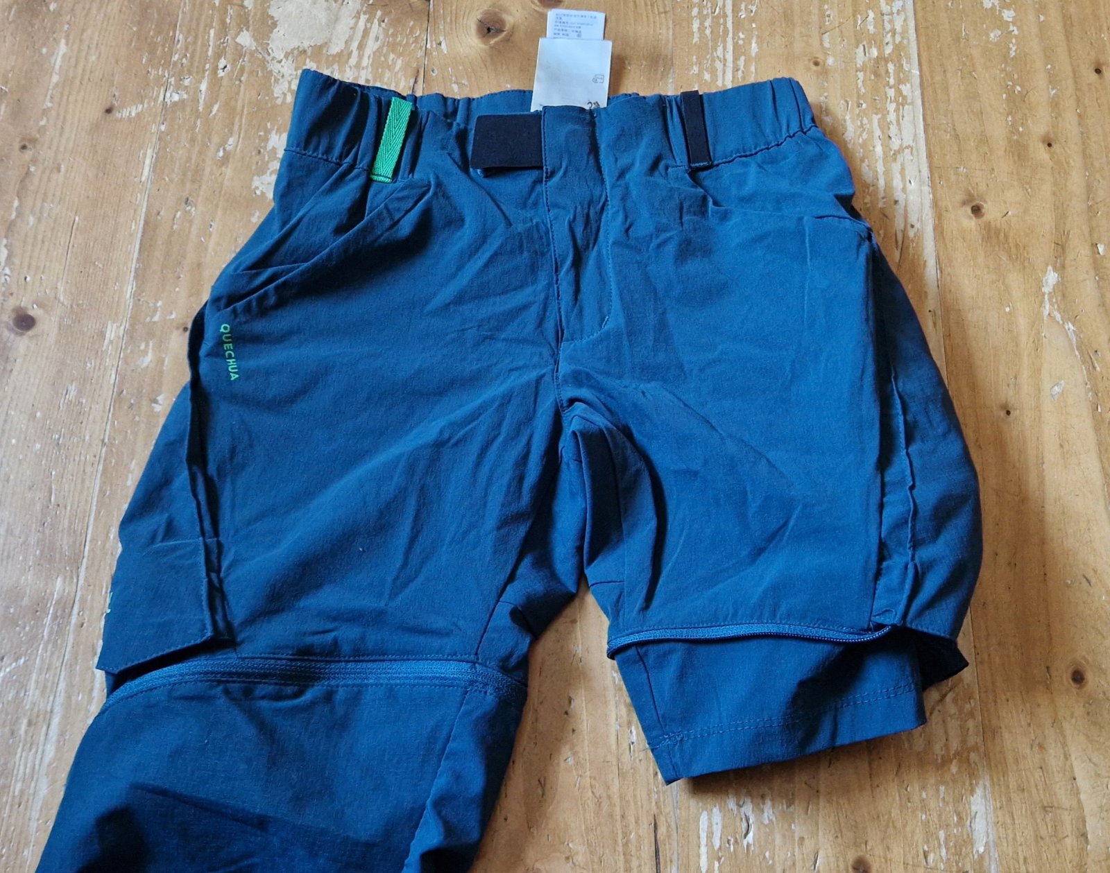 Detske turisticke nohavice z Decathlonu, Quechua, odopinatelna spodna cast, da sa skratit na kratasy. Nohavica sa neodopina uplne, ale da sa ciasotcne odzipsovat a zlozit do vrecka kratasu:) nestrati sa.