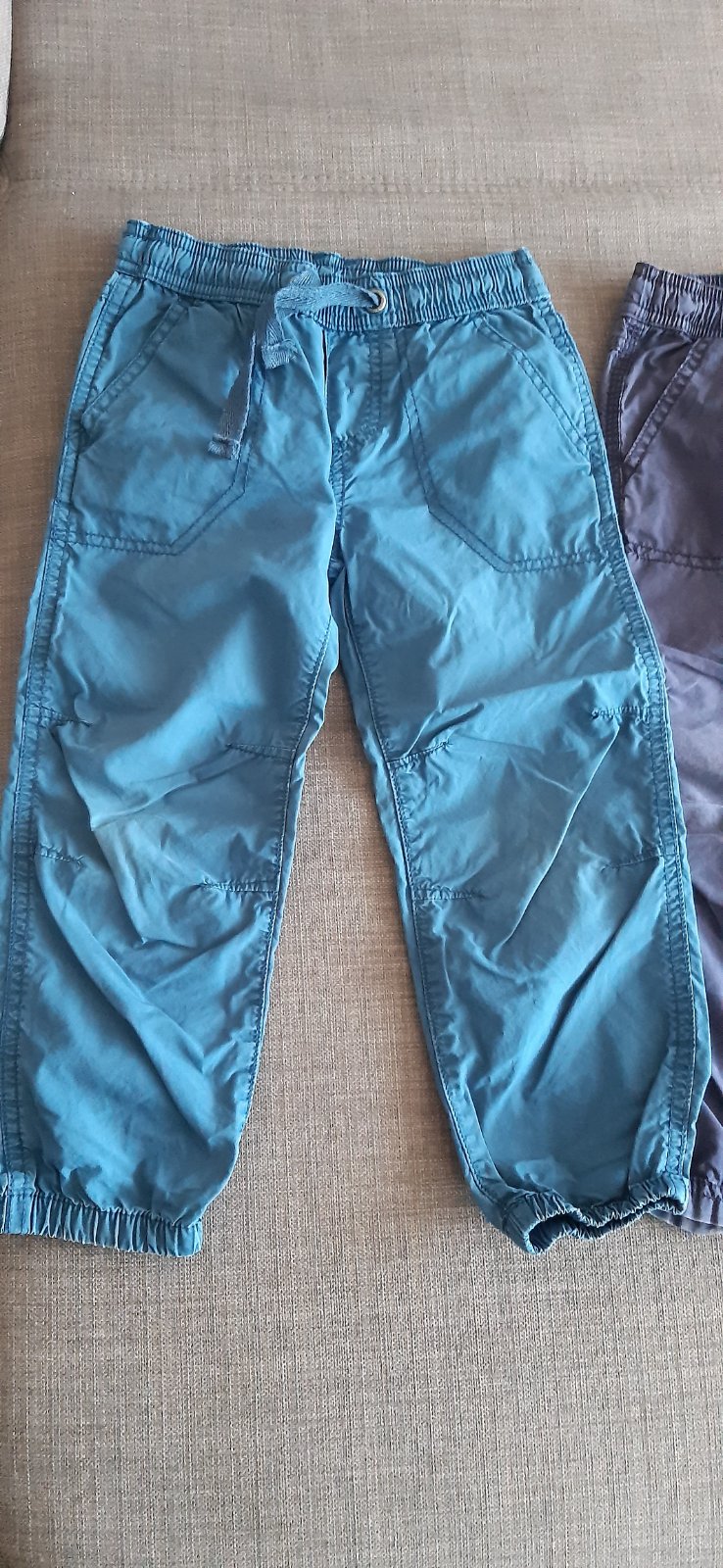 Ponúkam na predaj nohavice na leto (2 ks). Odtiene modrej (tmavomodrá a bledomodrá), veľ. 104 (3-4 roky), značka Lupilu, ľahký materiál na teplé dni (leto), 100 % bavlna. Tmavomodré sa dajú ovinúť na 3/4 pomocou gombíka. Nosené, ale v dobrom stave. Rozmery: dĺžka 55 cm, od rozkroku: 38 cm. Cena 4€/2 ks.