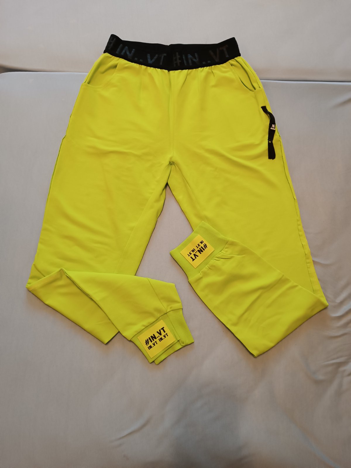 Predám neón žlto-zelené tepláky zn. Megi, ozdobná guma + pekné detaily. V. XL.