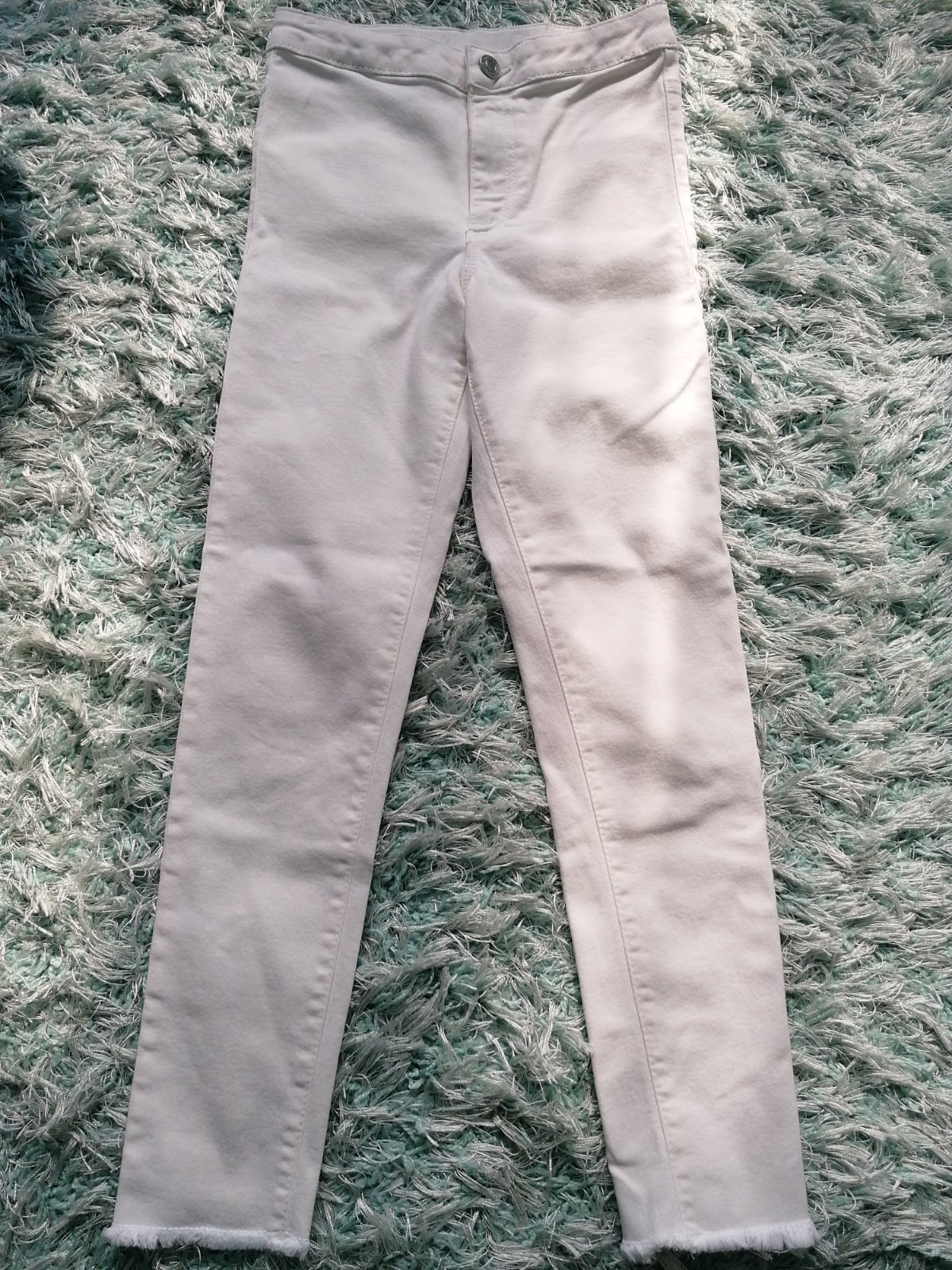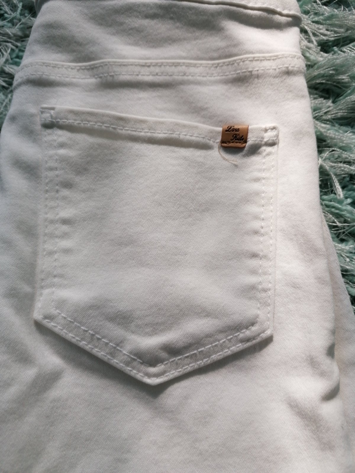 rifle pre dievča, veľkosť 128, na 7-8 rokov, Zara, bielej farby, opasok k tomu, aj keď sú s visačkou na ľavom stehne je šedý pásik /možno sa dá vyprať, neviem../