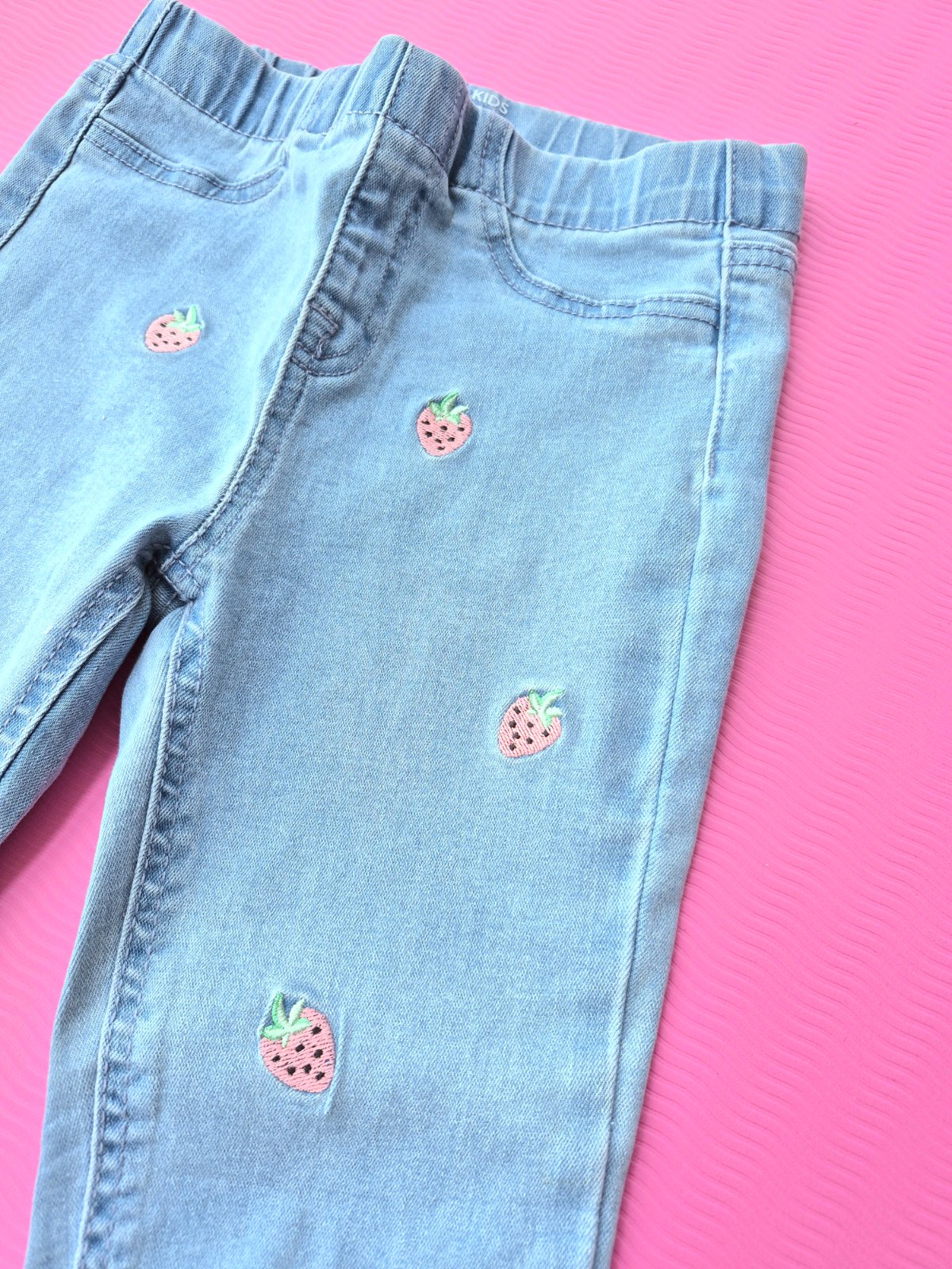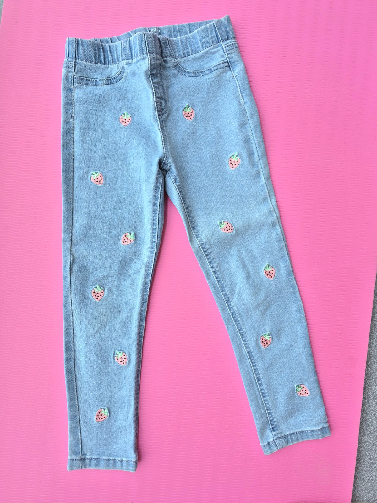 Jeansy s jahodami, skinny rifle