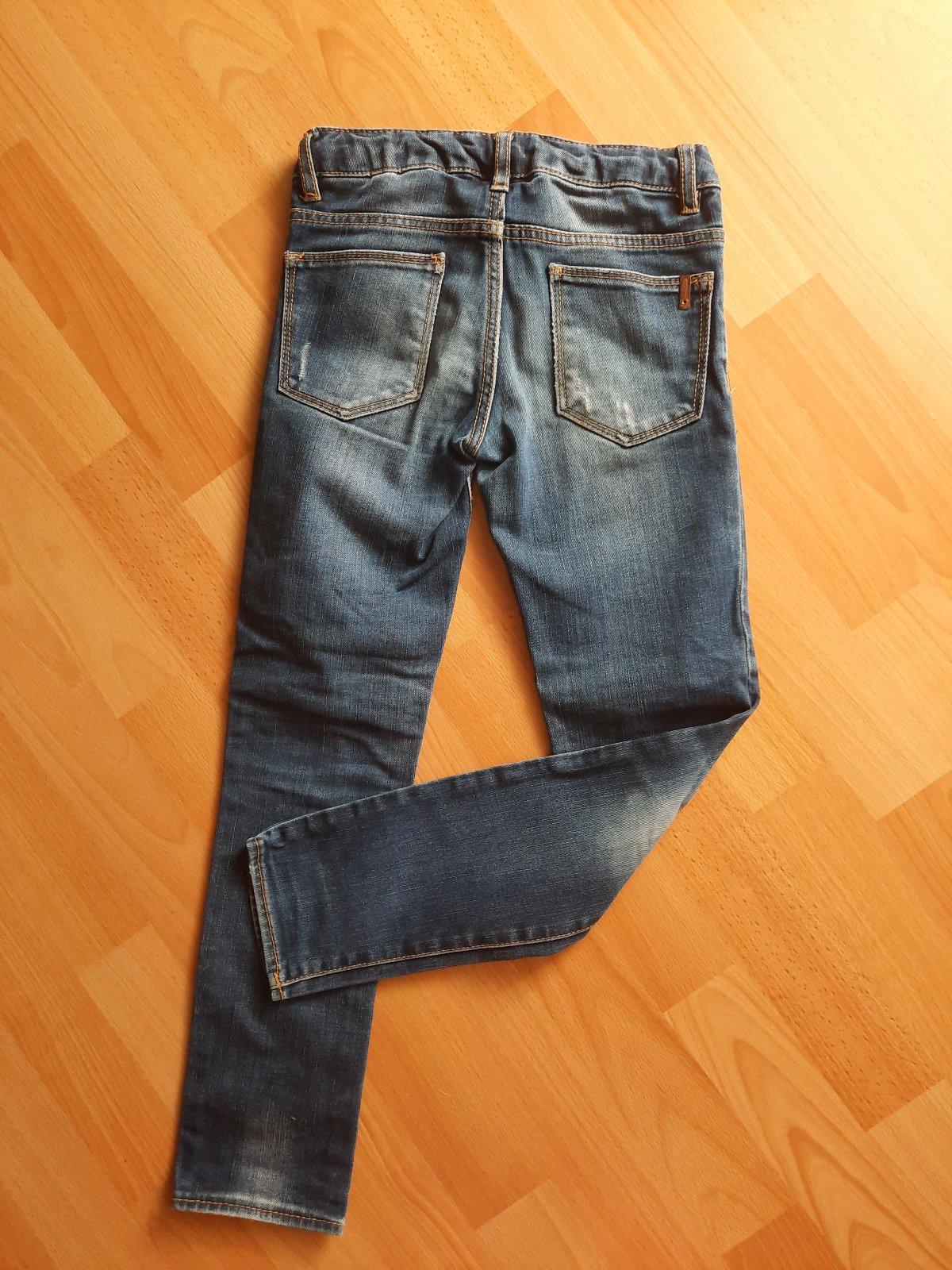 Pekné dievčenské skinny rifle tmavomodrej farby značky Zara vo veľkosti 116. Zapínajú sa na zips a gombík. Možnosť úpravy veľkosti pása. Málo nosené. Super stav.