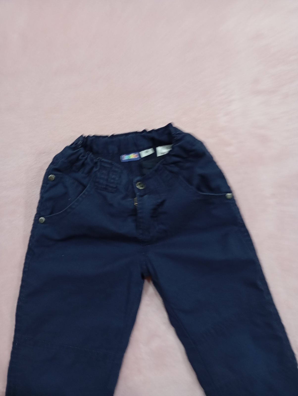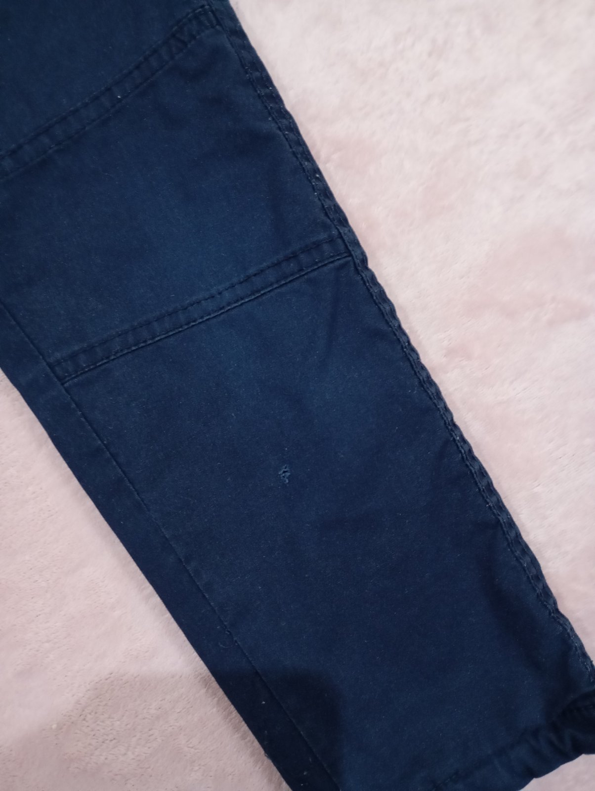 Hrubšie bavlnené nohavice podšite flanelom. Vhodné na toto prechodné obdobie. Nosené 1 dieťaťom. Pod jedným kolenom zašite, inak dobrý stav. Dá sa našiť aplikácia. Dĺžka 62 cm. V páse je gumičk...
