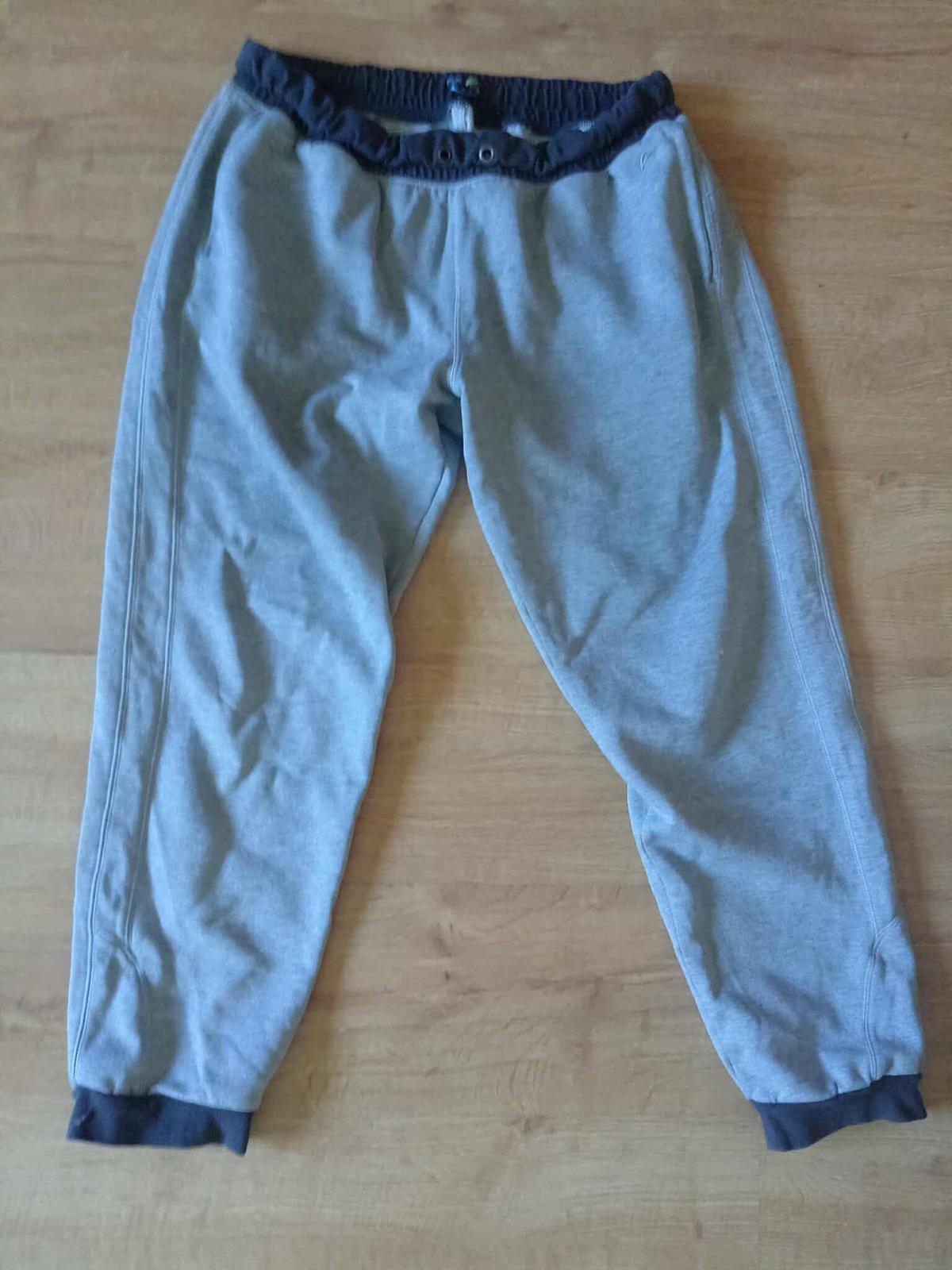 Tepláky sú bez poškodení, chýba iba sťahovacia šnúrka. ROZMERY: šírka v páse je : 2x 44cm natiahne sa na max. 2x 60cm , dĺžka je 98cm
