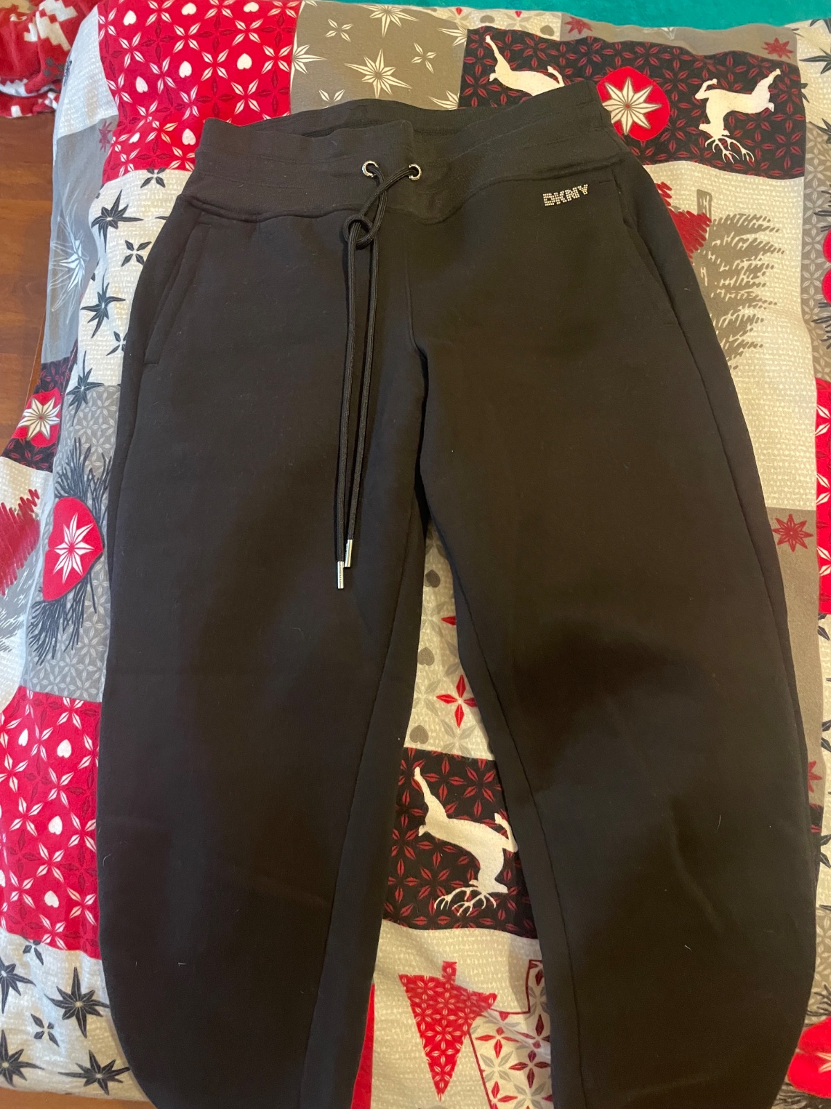 Makucke teple mne zial kratke, krasny kamienkovy napis DKNY farba tmava cierna, vrecka, kvalitne.