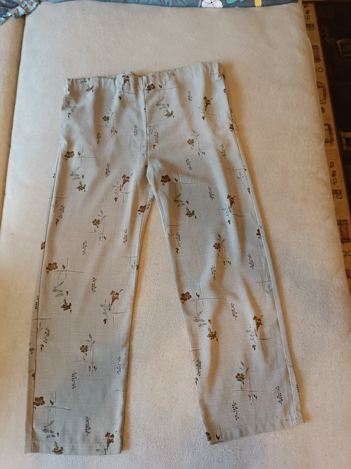 Veľkosť L, majú vrecká, v páse mali šnúru, ale stratila sa - je potrebné si dať do pása namiesto šnúry gumu podľa potreby.