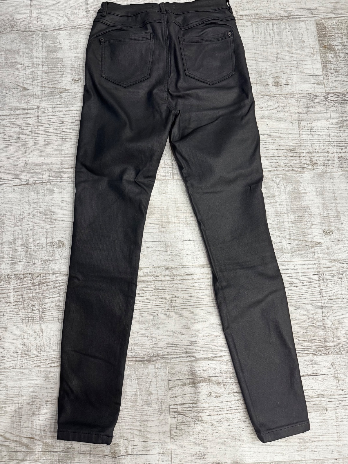 V dobrom stave bez poškodenia. Vačky na bokoch, vzadu jeden. V páse vzadu na gumičku. Zapínanie na gombík a zips. Celková dĺžka 107,5 cm, dĺžka od rozkroku 80 cm, šírka v páse v klude 34 cm.