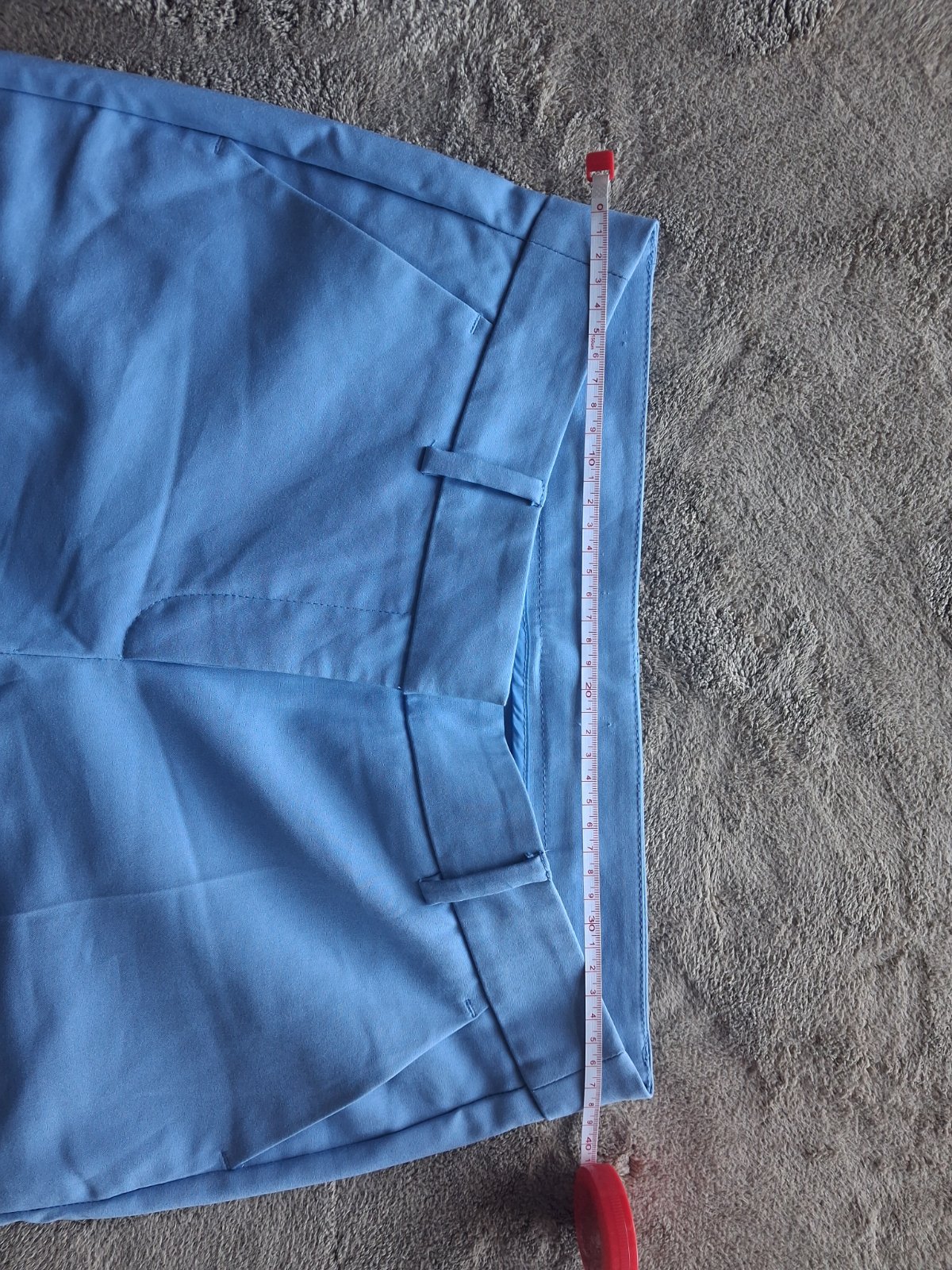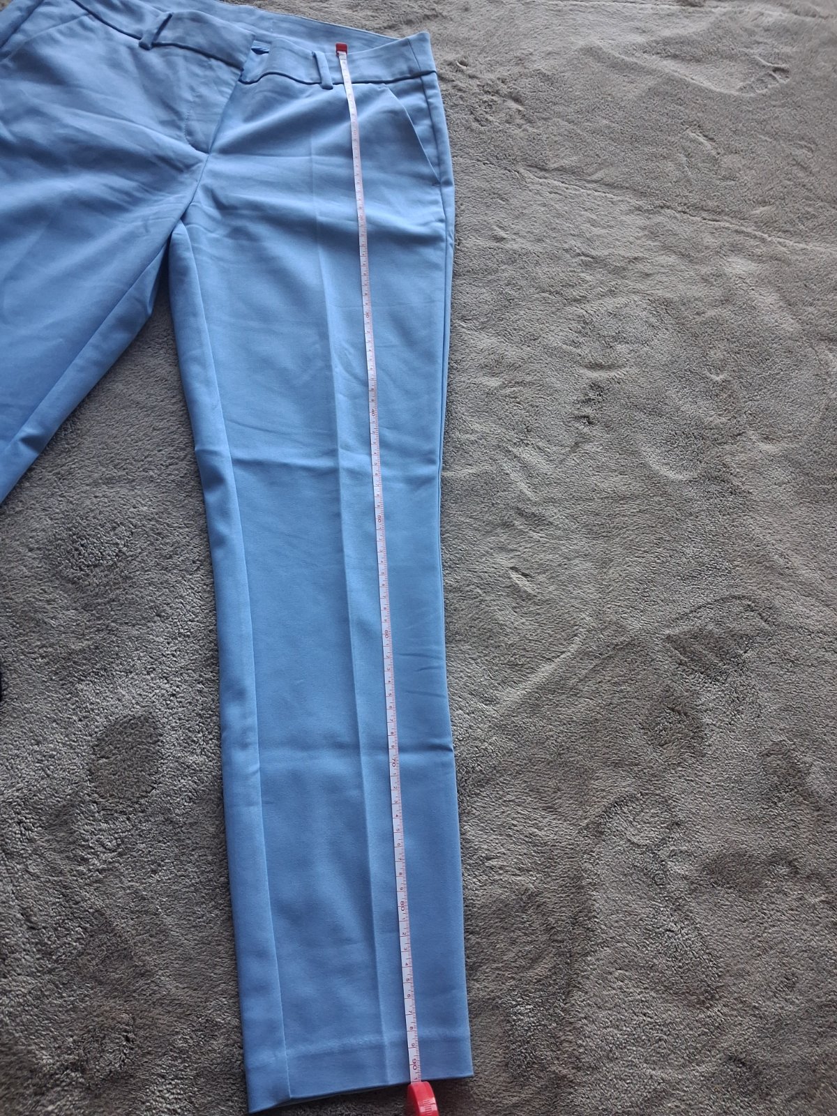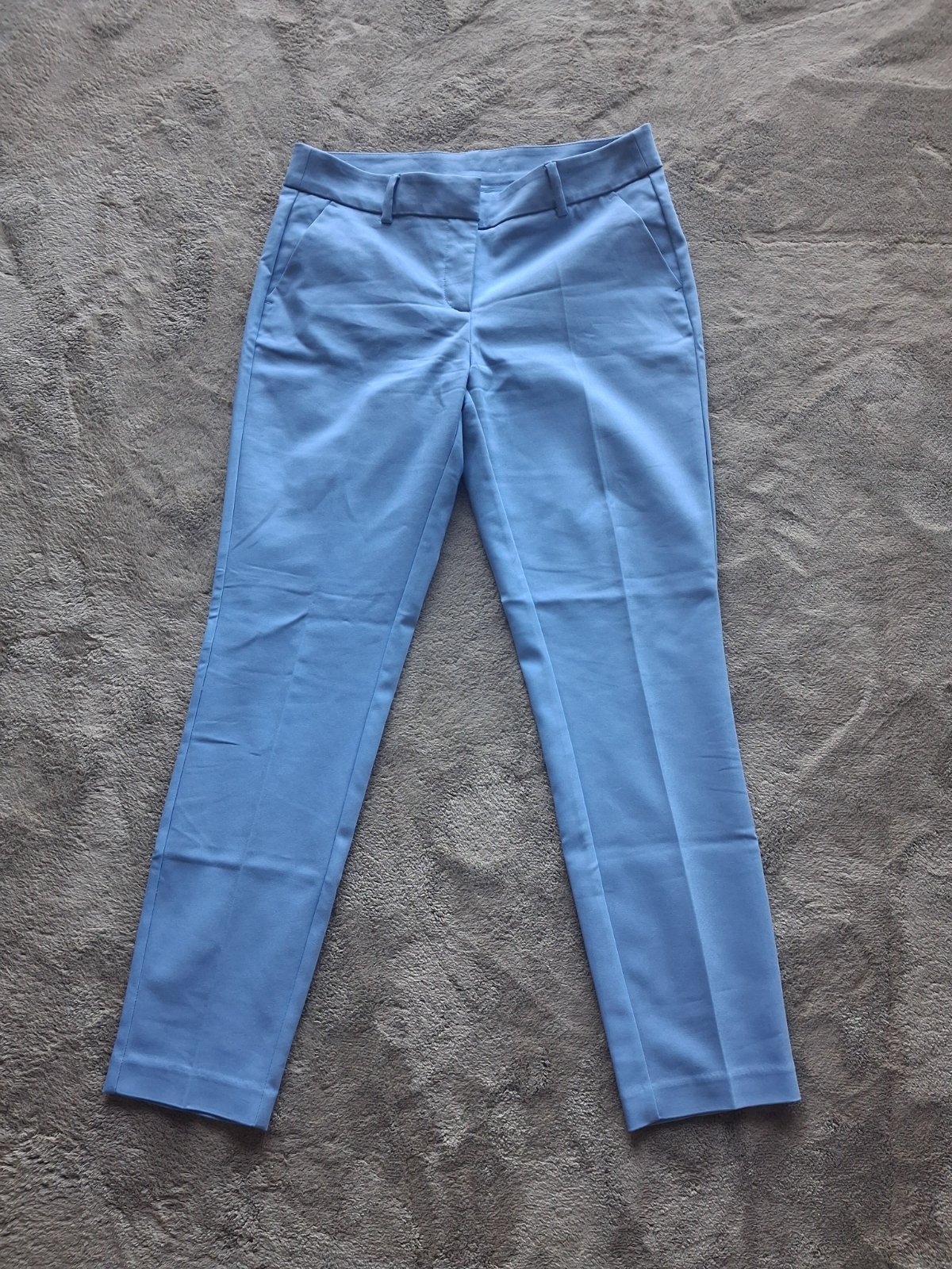 Krasne pastelové modré nohavice, oblečené raz.