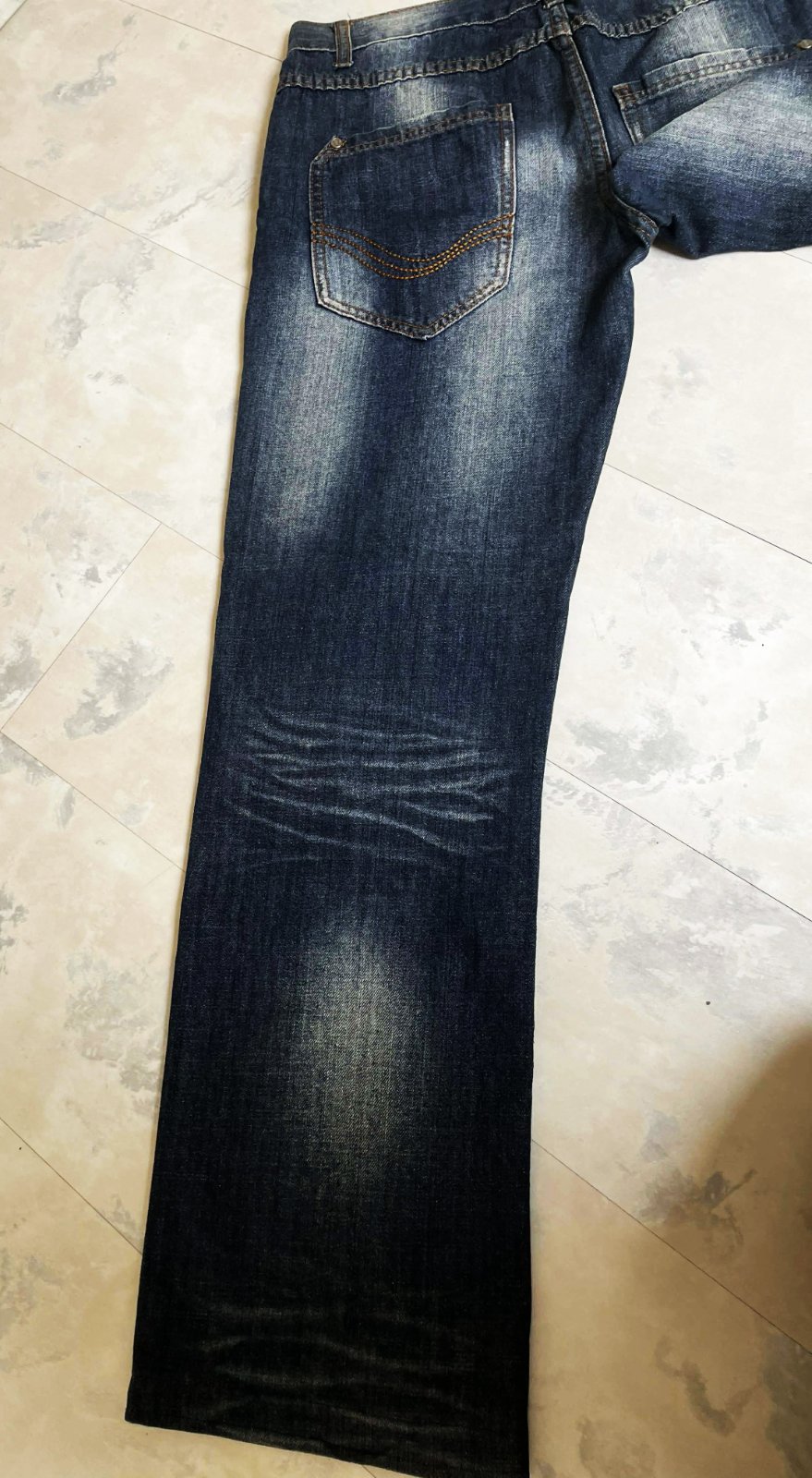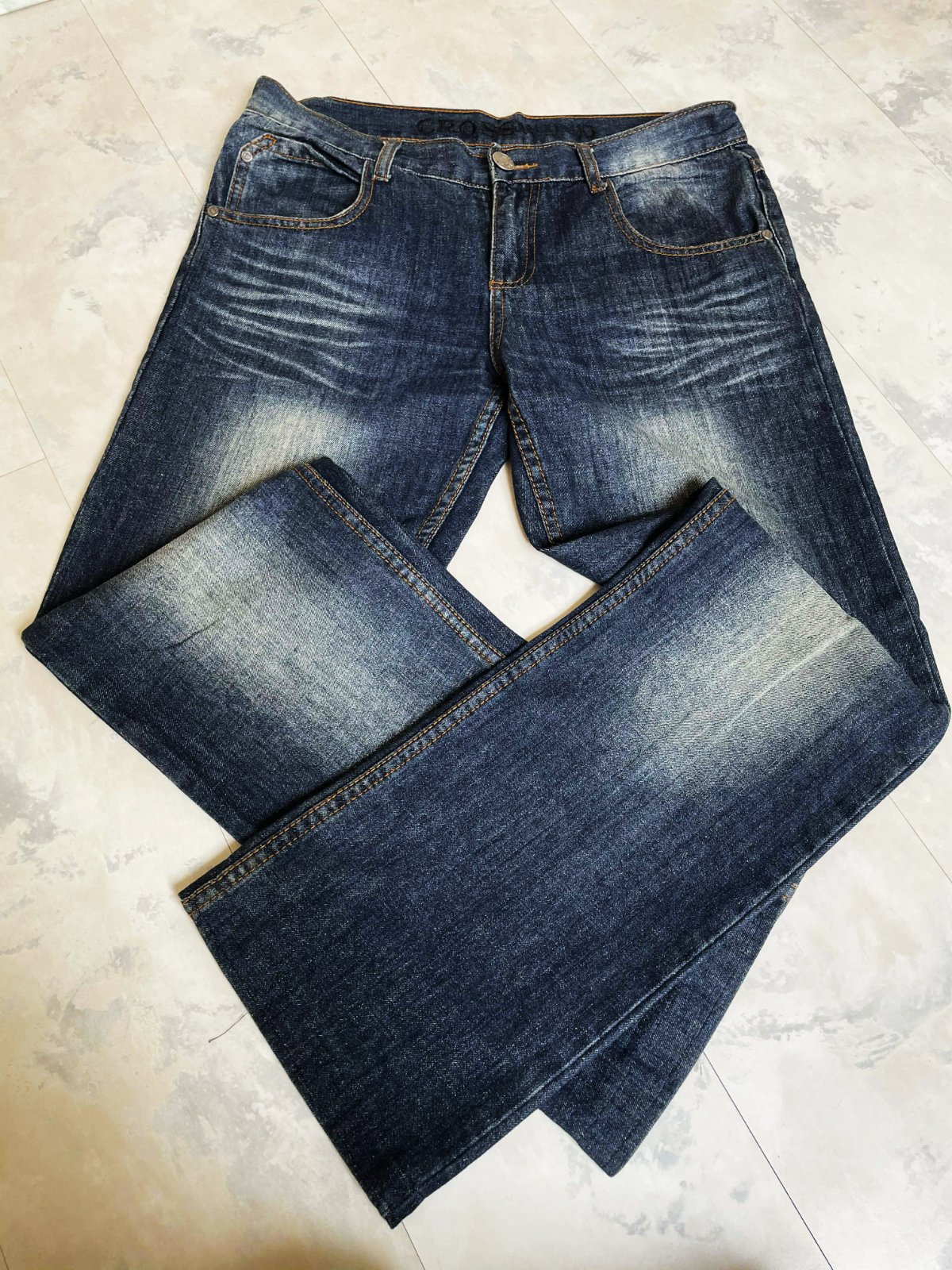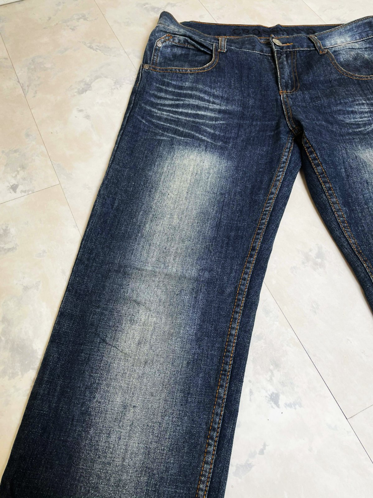 tmavomodré džínsy so zosvetleným efektom na stehnách a sedacej časti značky Crosswind,v top stave,veľkosť a značka vyfotené