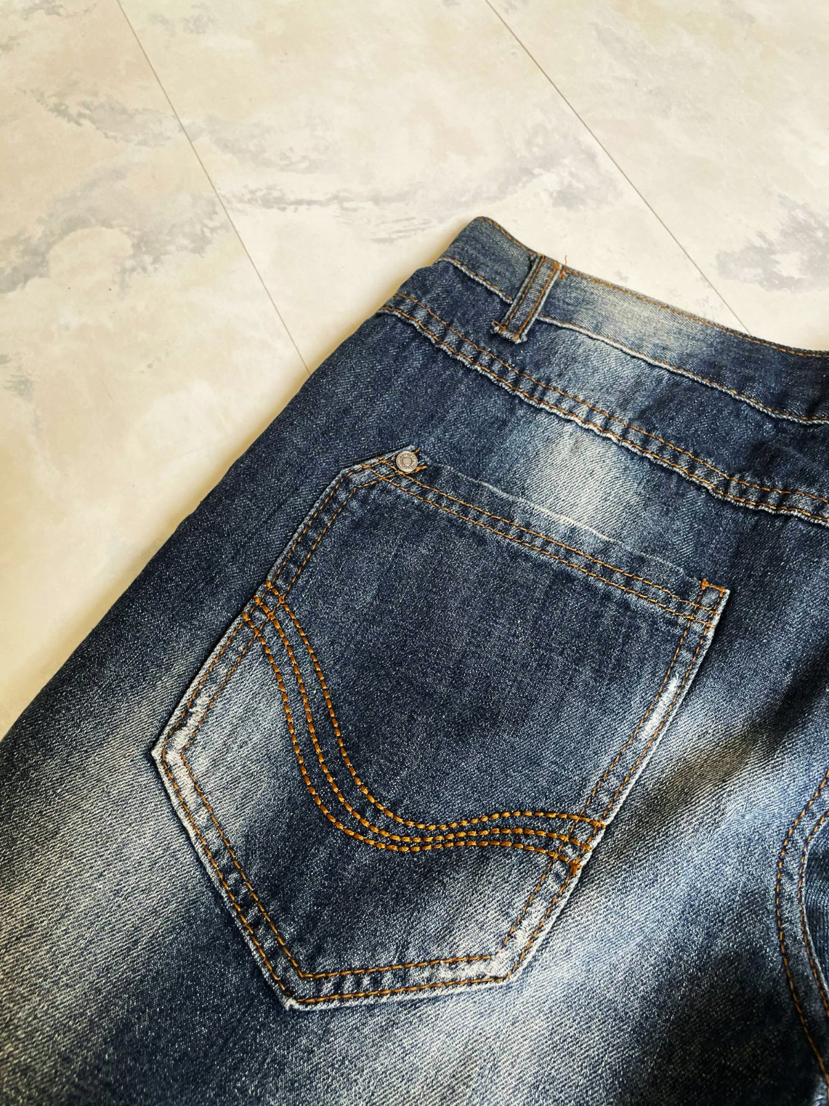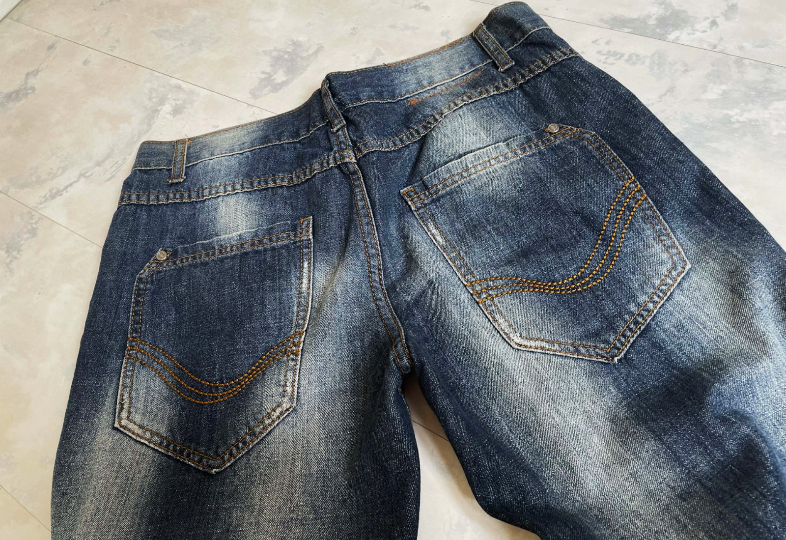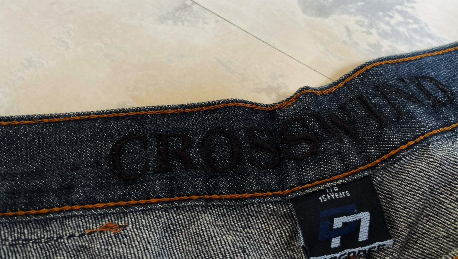 tmavomodré džínsy so zosvetleným efektom na stehnách a sedacej časti značky Crosswind,v top stave,veľkosť a značka vyfotené