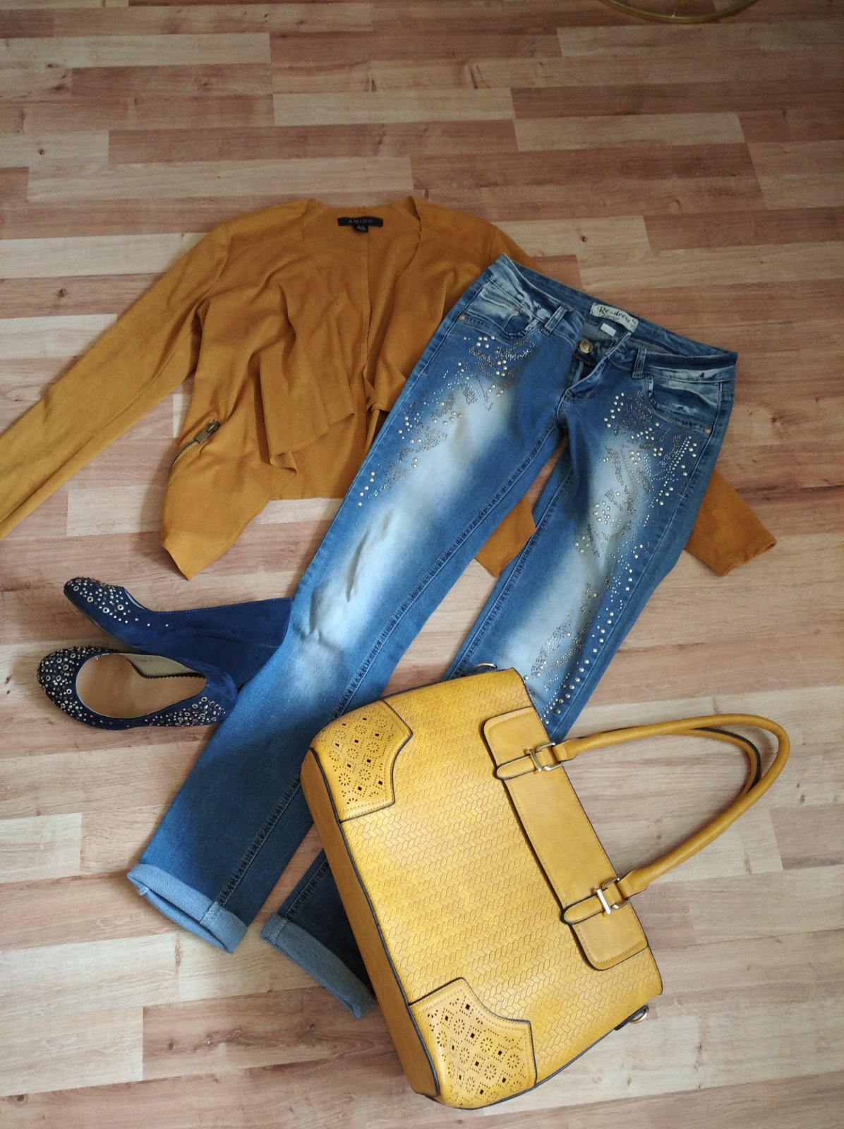 Materiál je mäkká elastická džínsovina. V ponuke mám aj topánky a kabelky z foto.