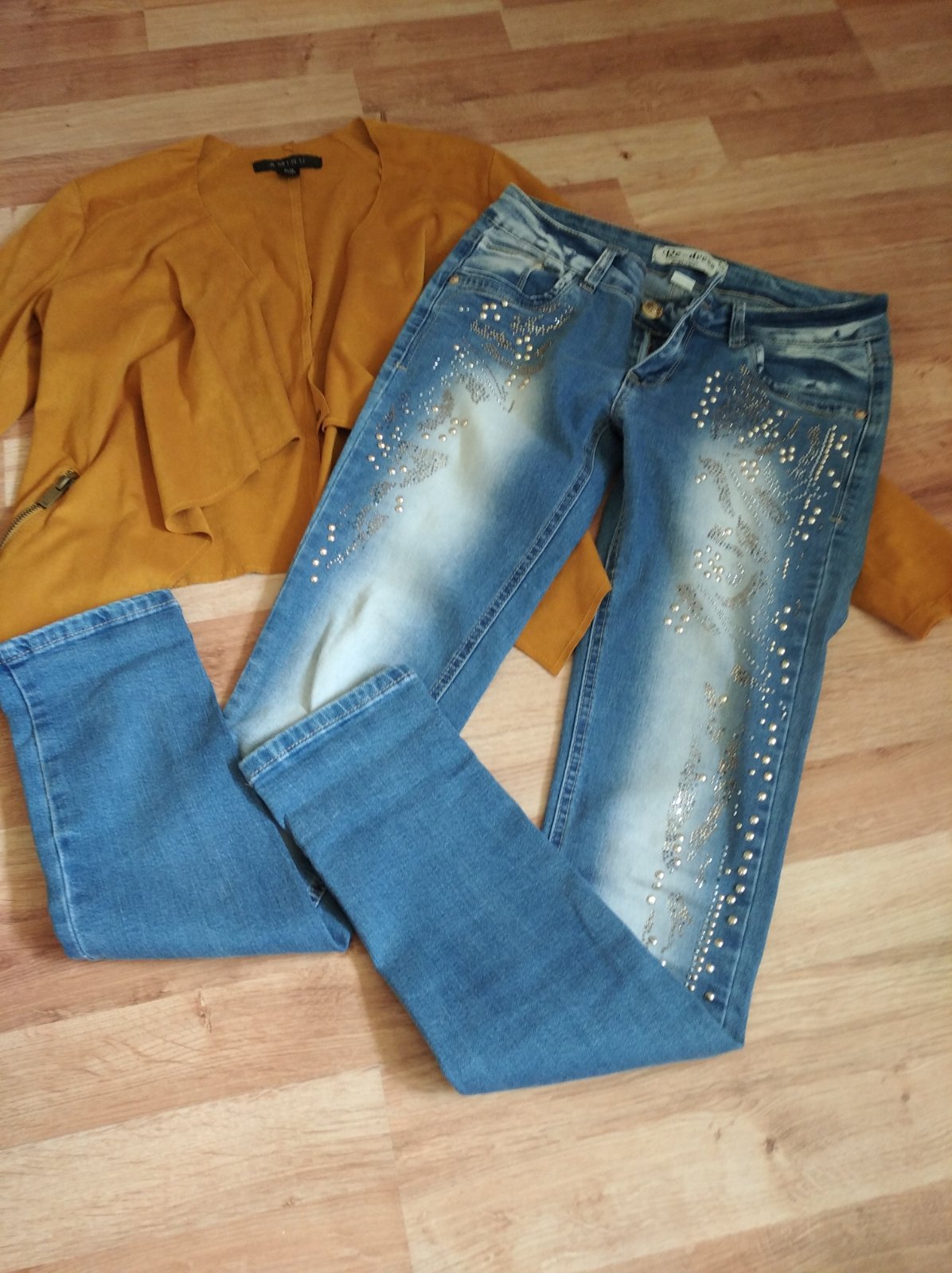 Rifle so štrásovým zdobením (kde tu už perlička odpadla). Pár krát nosené, bez poškodenia.
