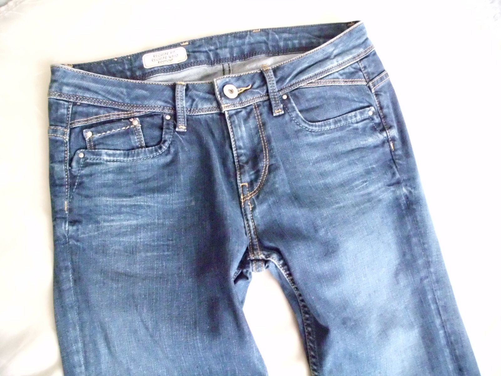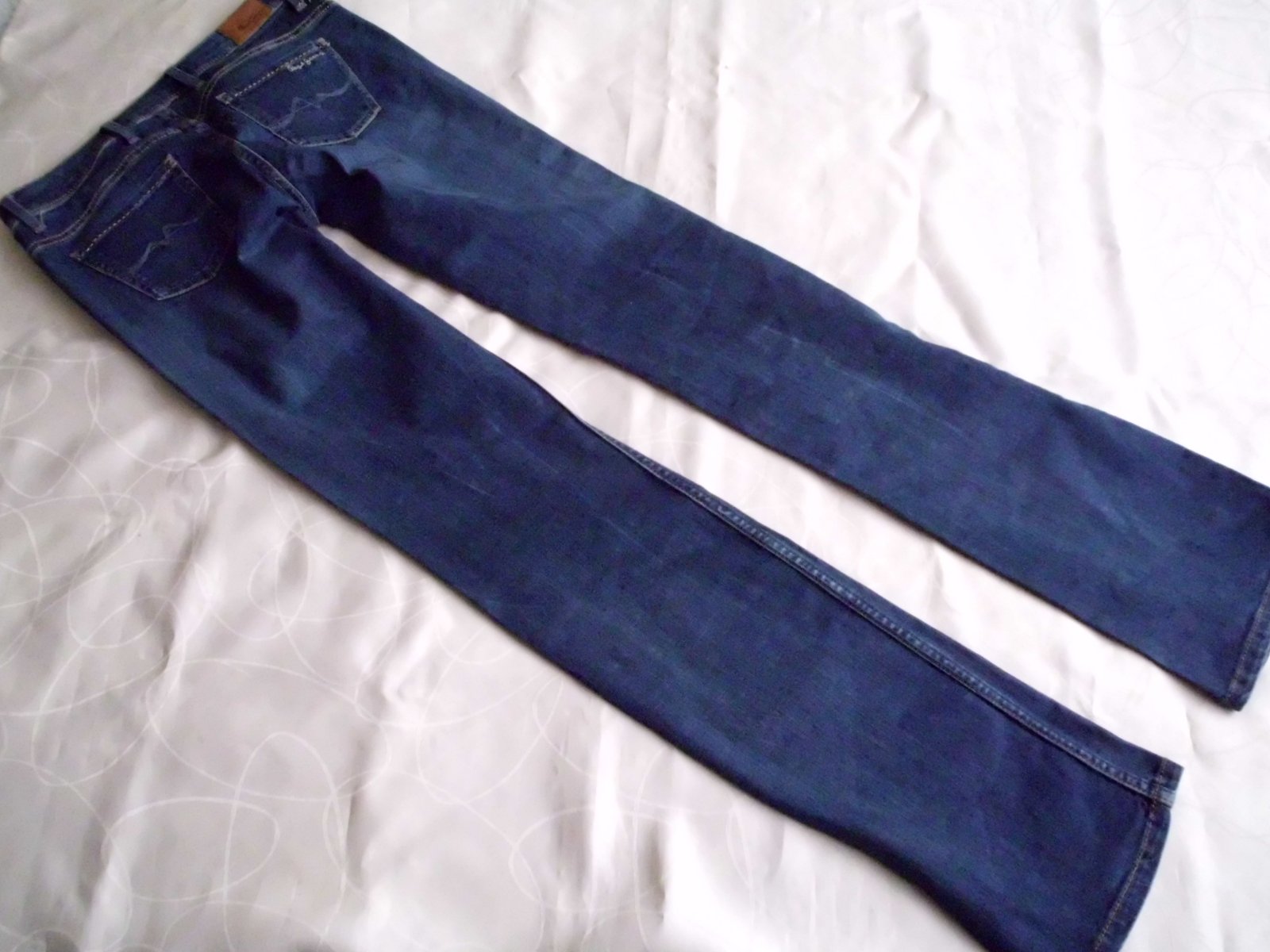 Predám dámske riflové nohavice Pepe Jeans 26/34 v. S, pás 35,5 cm, strih nohavice do mierneho zvona, predný sed 20 cm, zadný 31 cm, celková dĺžka 106 cm, spodok 20 cm, stehno 23 cm, veľmi príjemná, mäkká nie hrubá riflovina, zloženie na foto s elastanom, 100% stav