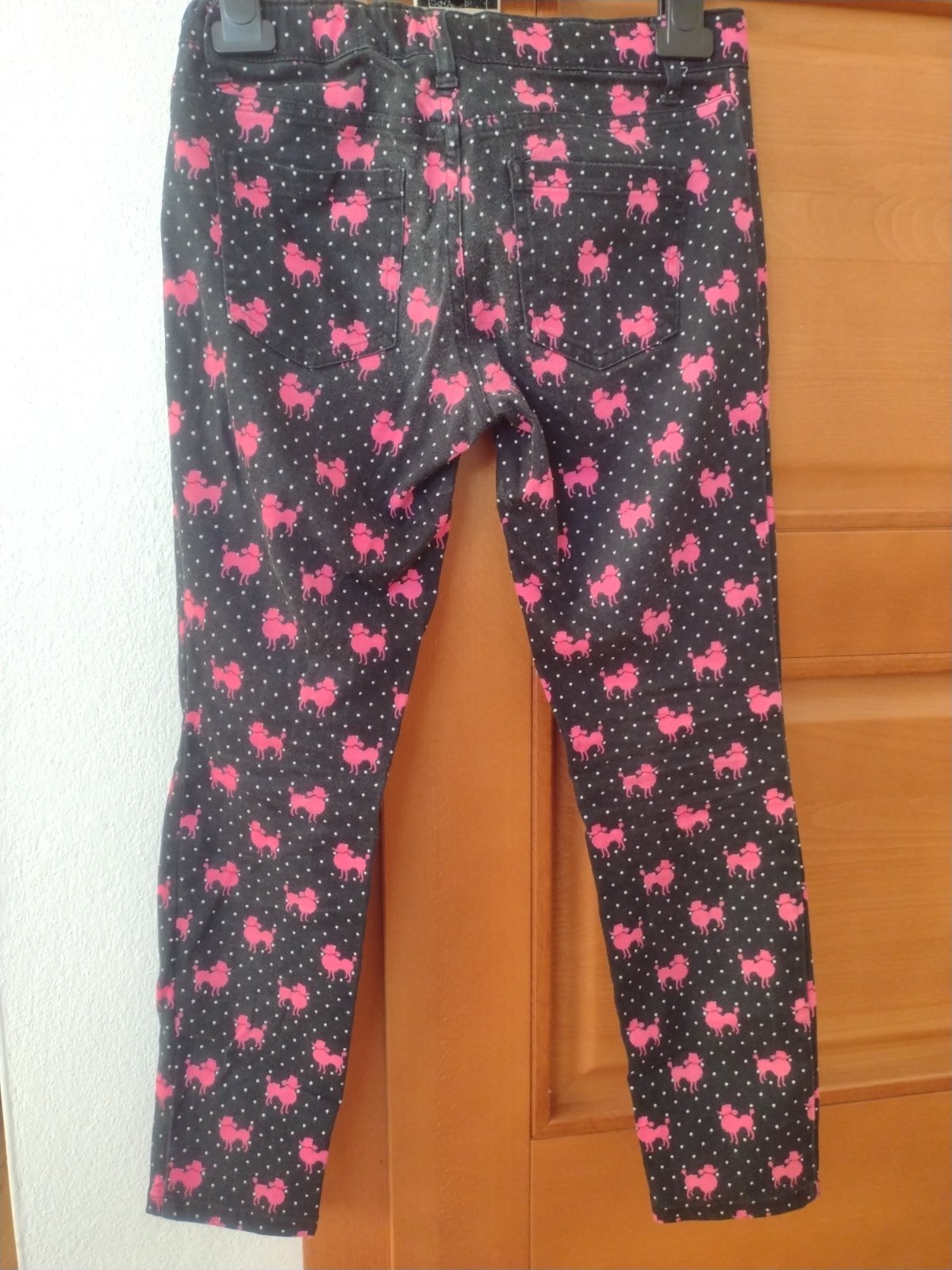 kupovane nove, dcera ich vsak casto nosila, boli jej oblubene. na kolene vysuchana látka, bude treba schytit stehmi. urcite este posluzia. odporucam pre chudsie dievcatko.