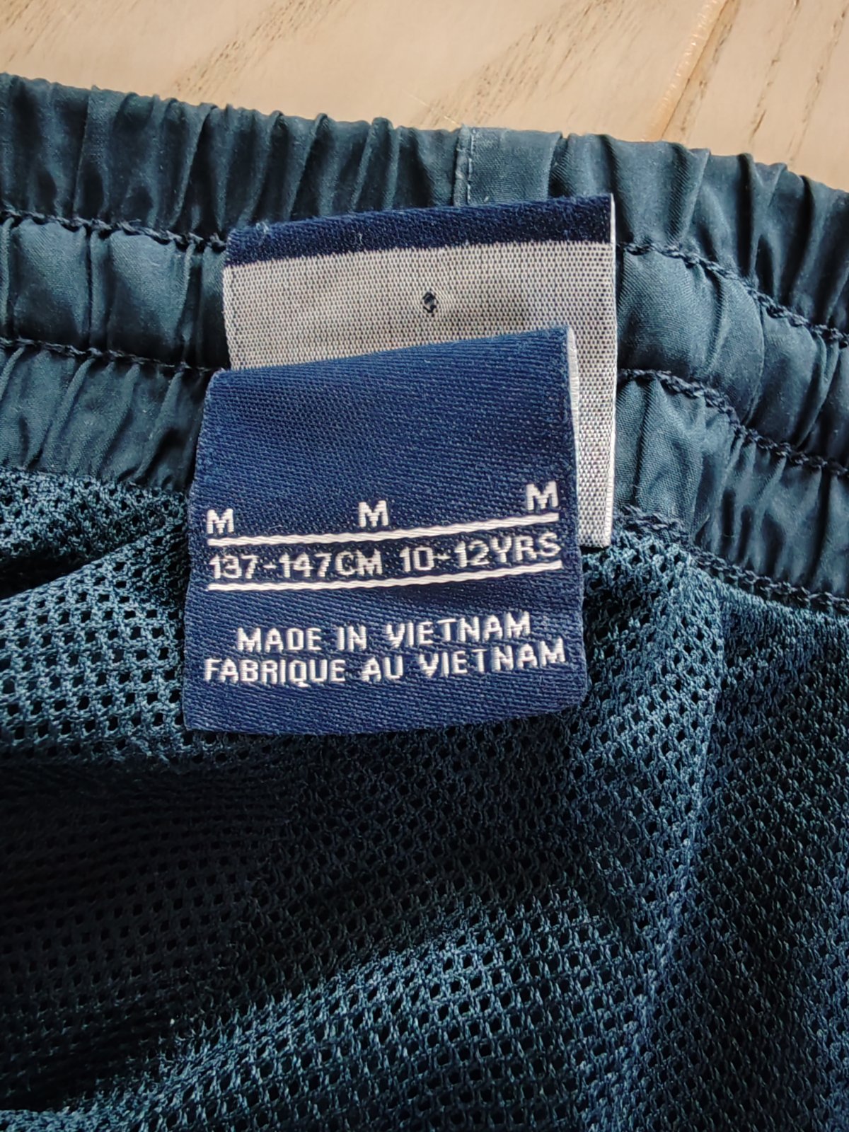 Velkost 134-146. Detské M. Dĺžka 85 cm, pás na gumu- 2x30 cm. Na kolene zašitá malá dierka. Materiál polyester.
