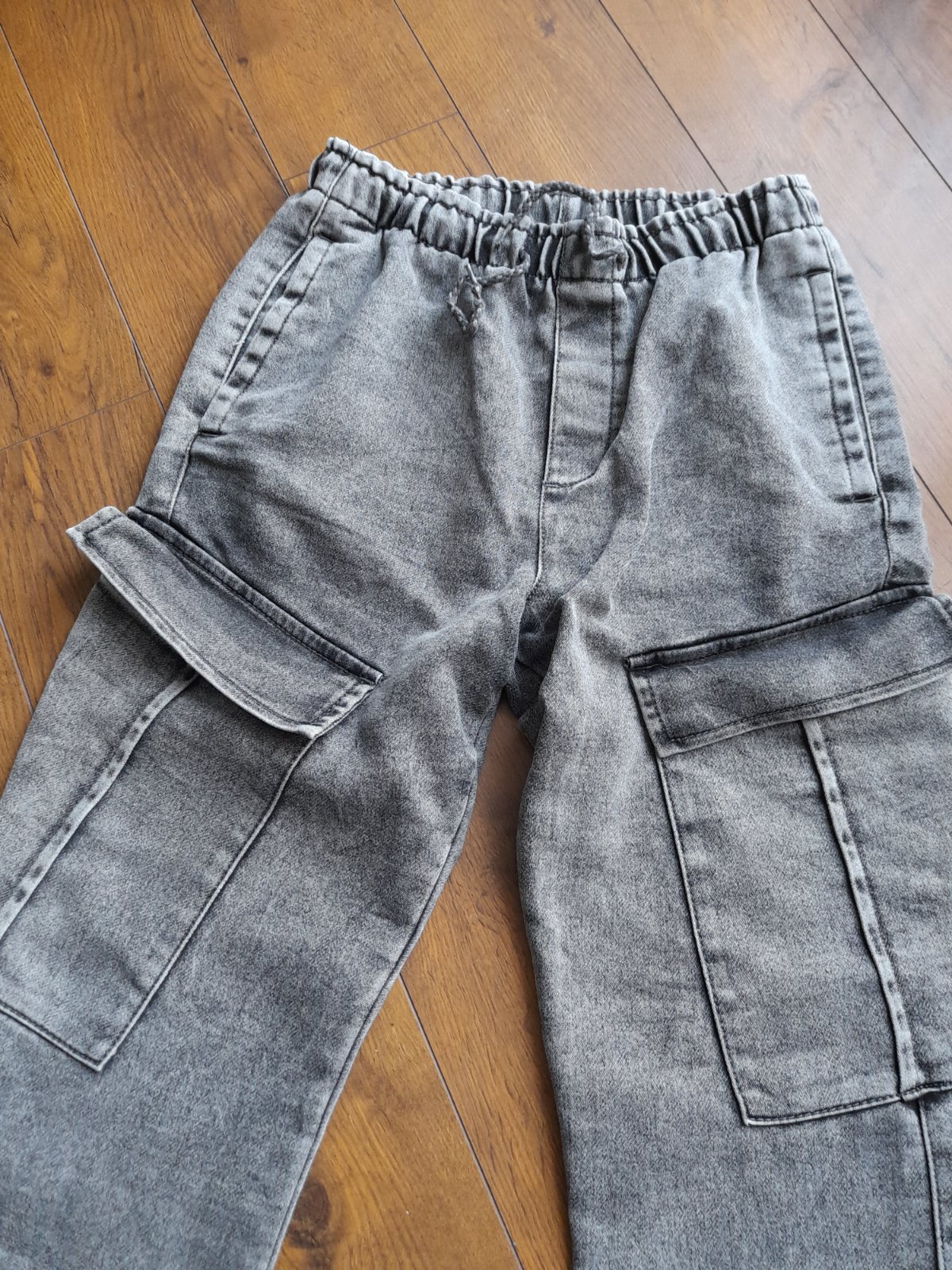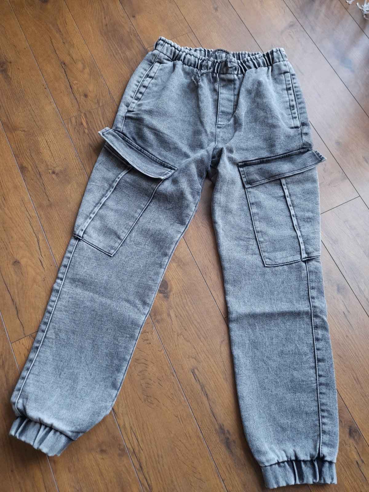 Pekne asi 2x oblečené rifle s vreckami v páse na šnúrku a ukončené patentom pas v kľude 2x34 celková dĺžka 97 vhodné do školy viac odpoviem.
