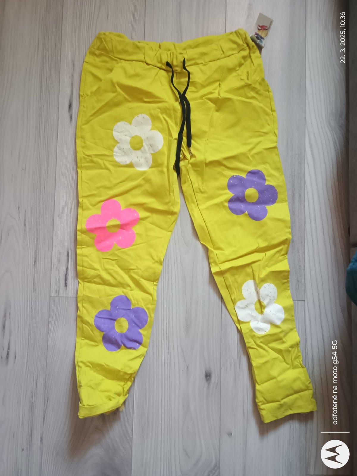 Predam v peknom, neposkodenom stave sytozlte nohavice, dlzka cca. 96cm, pas cca. 46cm, boky cca. 55cm