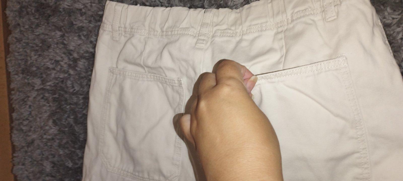 Nosené krátko, syn rýchlo vyrástol. Sú vo výbornom stave, len na jednej nohavici je fľak, ktorý nejde vyprať. Je to pod kolenom. Pri nosení si nevšimnete, snažila som sa detailne nafotiť. Pás 34-43...