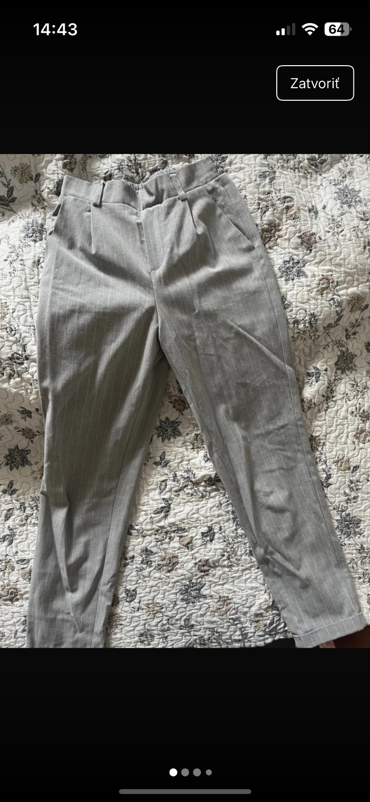 Veľkosť 34 Značka Stradivarius 1x oblečené Poškodenie je odfotené na predposlednej fotke (kúpila som ich v kamennej predajni, no všimla som si to až po odstrihnutí visačky…) pri bežnom nosení to ni...