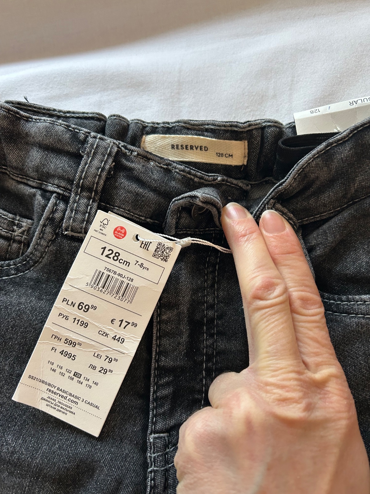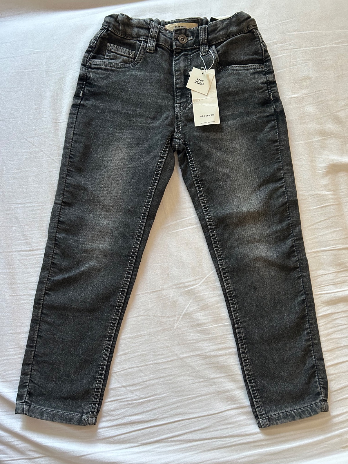 Malo nosene, mäkká riflovina, v pase guma a šnúrka, na spodkoch tiez gumicka, jednu sú tmavosede,druhé bledé, spolu