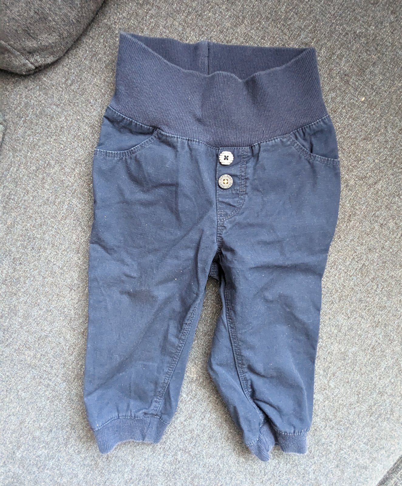 Malo nosene, podšité nohavice veľkosti 86 cm na 12-18 mesiacov bez poškodenia.
