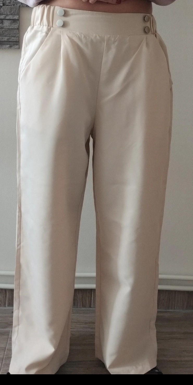 Ľahké nohavice, super sedia na postave,na pravej nohavici vada látky, keďže ju malo vidieť tak sa nedala ani odfotiť
