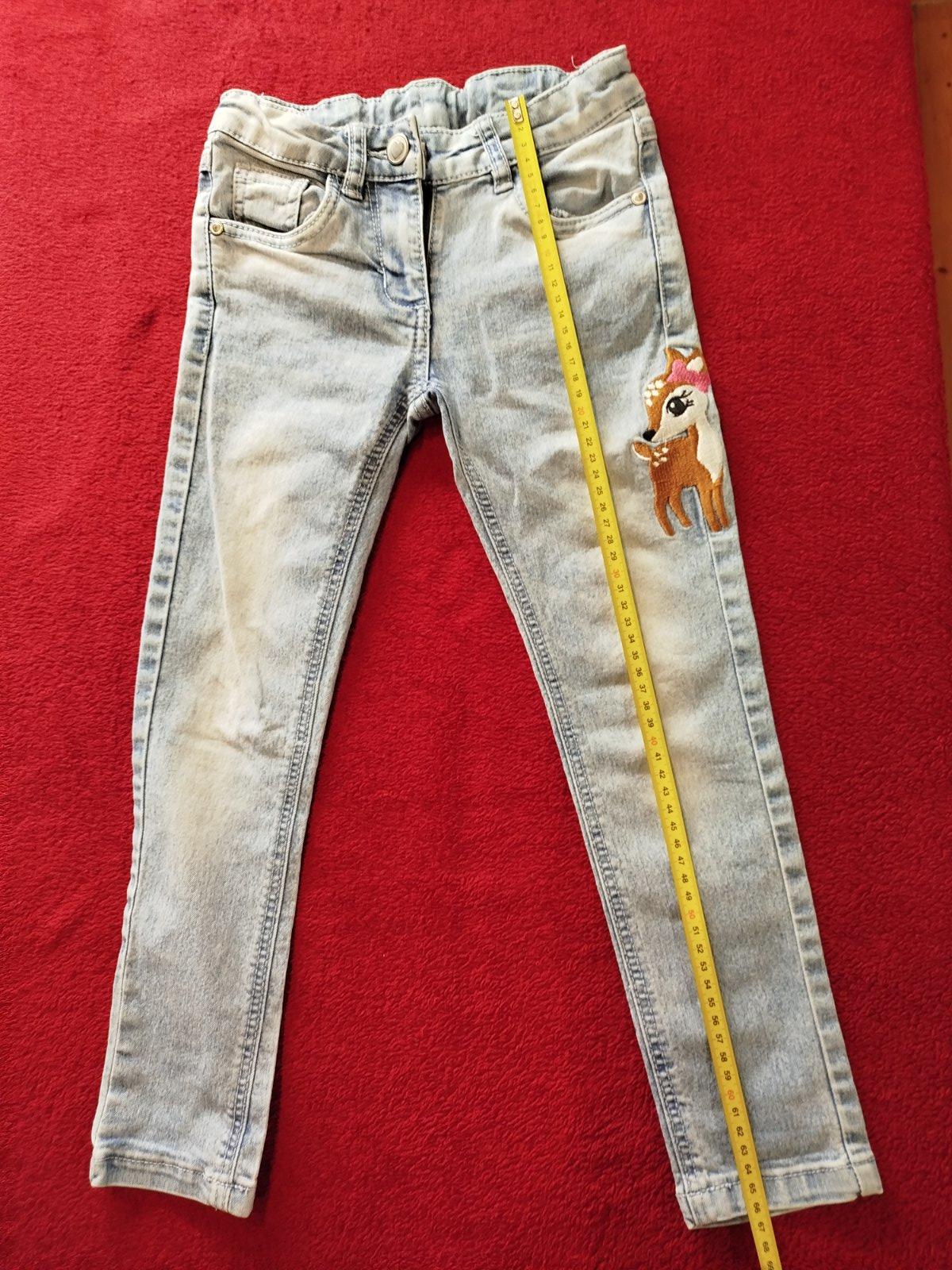 Krásne dievčenské rifle s výšivkou. - v páse majú sťahovaciu gumičku - bez akéhokoľvek poškodenia - dĺžka nohavíc 61 cm - šírka v páse 27 cm